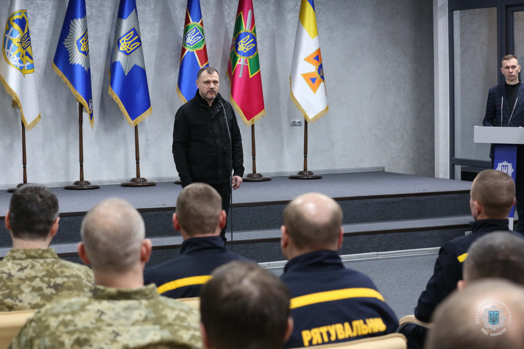 «Ті, хто сьогодні щодня зустрічаються зі смертю, з горем інших людей, це ті люди, які цементуватимуть нашу державу, її економіку на багато десятиліть уперед. Кожному бажаю не стомитися, як би важко не було. Країна пишається вами», – такі напутні слова виголосив очільник відомства героям, більшість з яких одразу поїде кожен на свою передову.