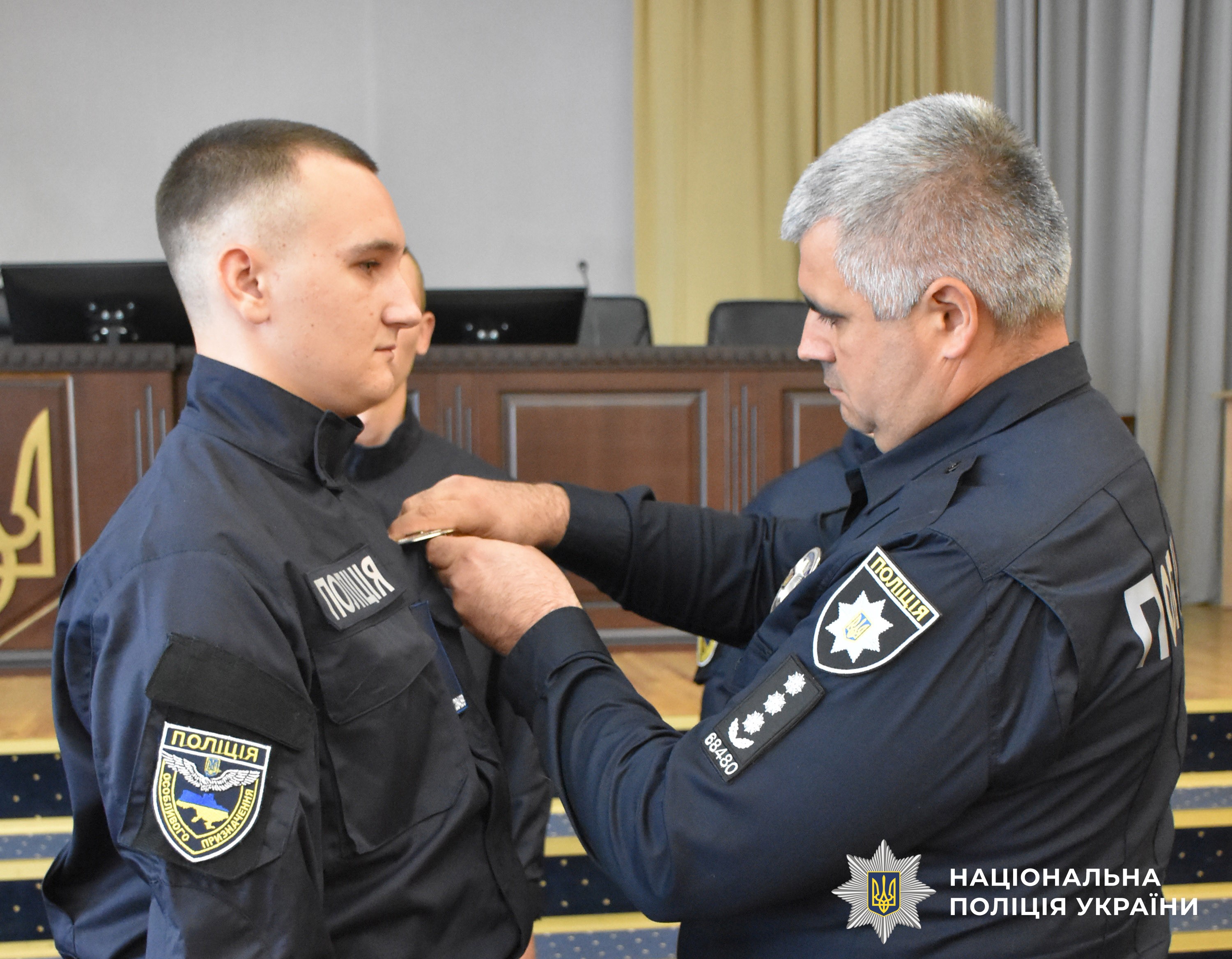 Він подякував правоохоронцям за важливе рішення – долучитися до підтримання правопорядку, забезпечення безпеки та зміцнення законності. Побажав гідно виконувати професійні обов’язки із захисту прав громадян та інтересів держави і вручив кожному поліцейському жетон.