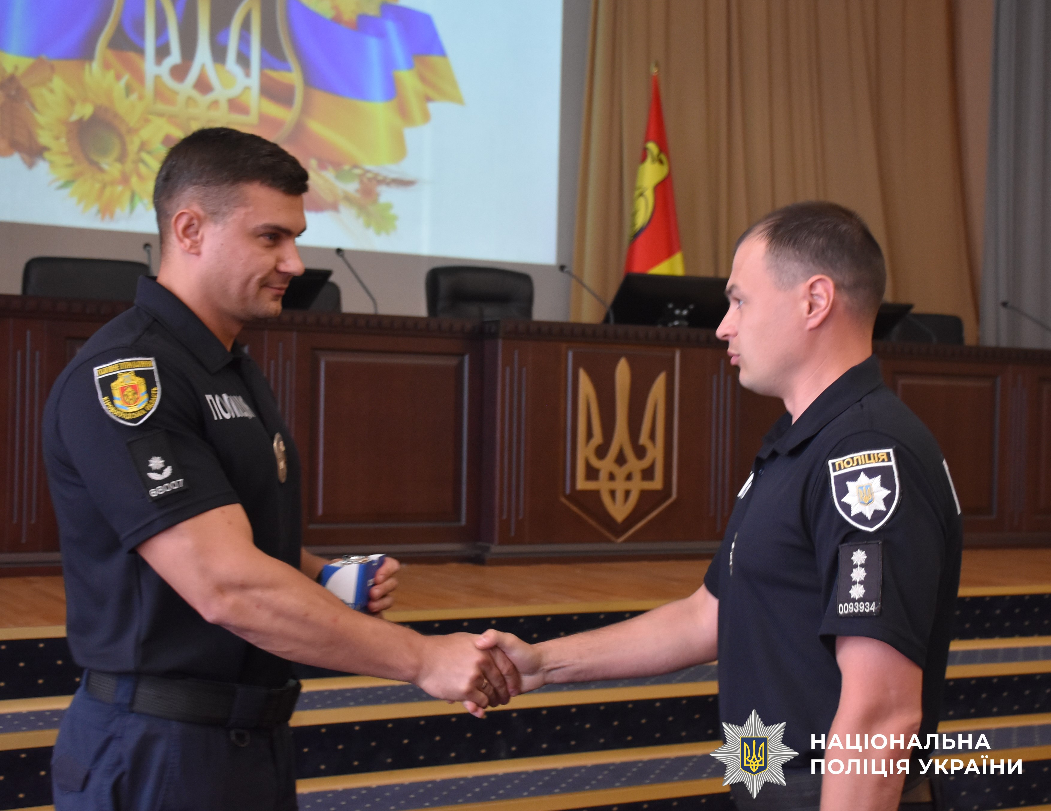 Голови відомчих профспілкових організацій Валерій Шевчук та Дмитро Мацібора вручили поліцейським грамоти і подяки профспілок та цінні подарунки – наручні годинники.