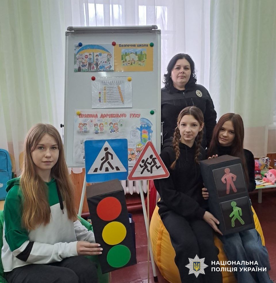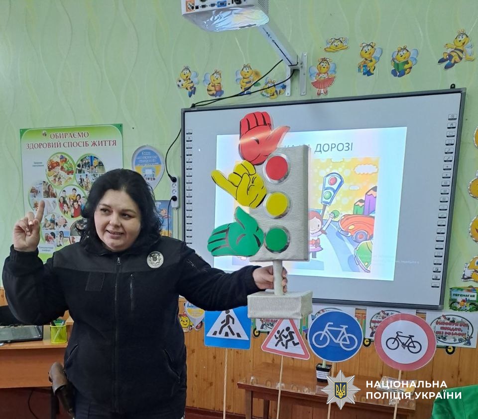 У дитячому садочку Новгородківської територіальної громади такий урок відбувся за участі ювенальної поліцейської Кропивницького районного управління Дар’ї Калабанової. З малечею вивчали сигнали світлофора та як правильно переходити дорогу через пішохідний перехід.