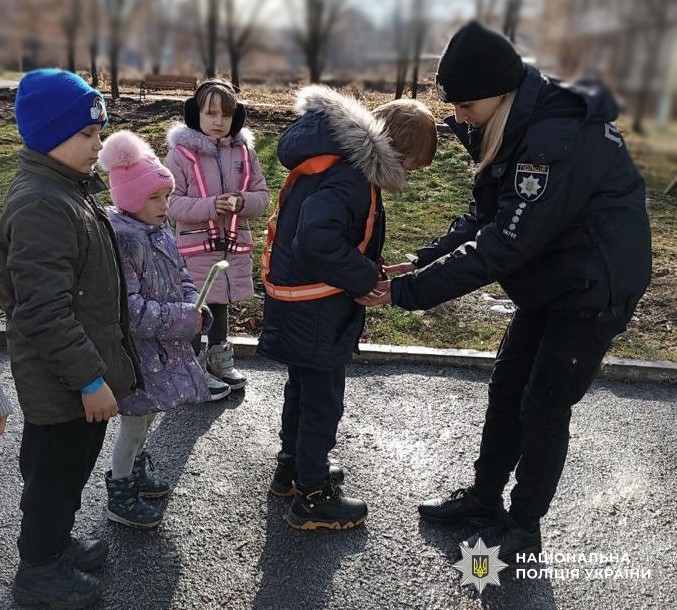 Ювенальні поліцейські зокрема повторили з дітьми правила дорожнього руху та важливість буди видимими у темну пору доби або у разі погіршення погодних умов. Учасники отримали світловідбиваючі елементи – браслети та жилети.