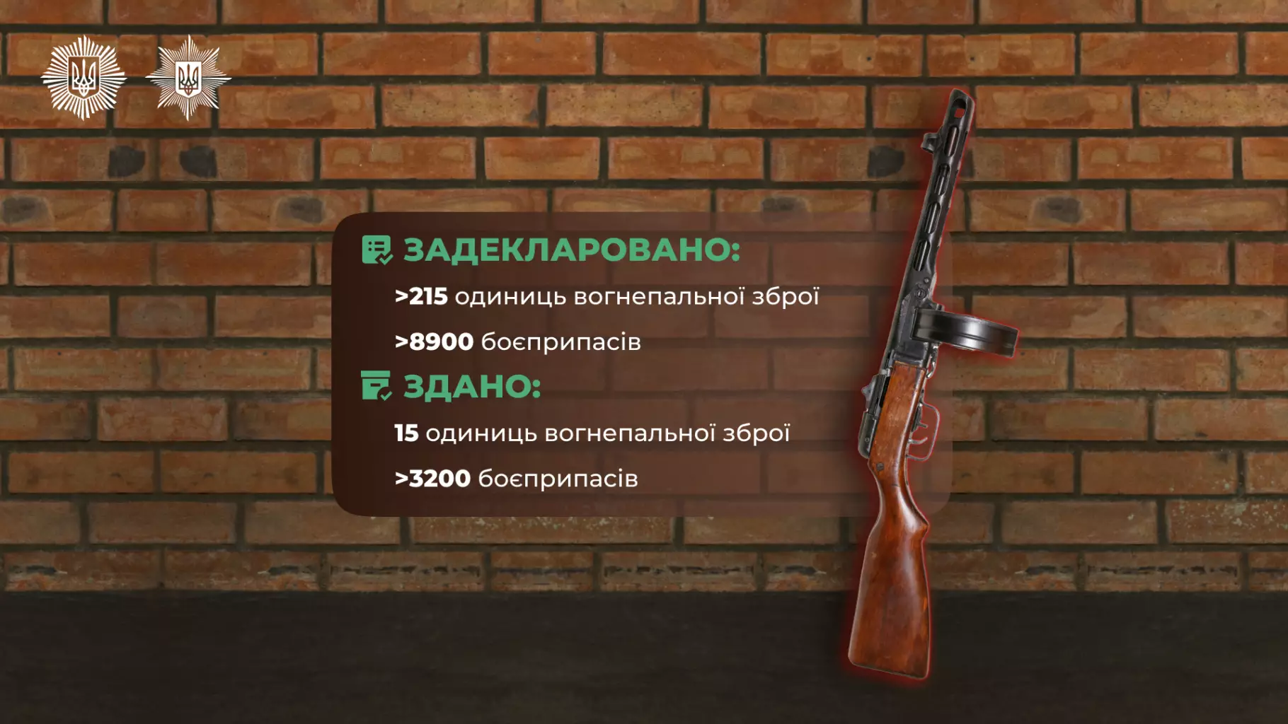 Додатково до поліції було здано 15 одиниць вогнепальної зброї та 3 221 боєприпас.