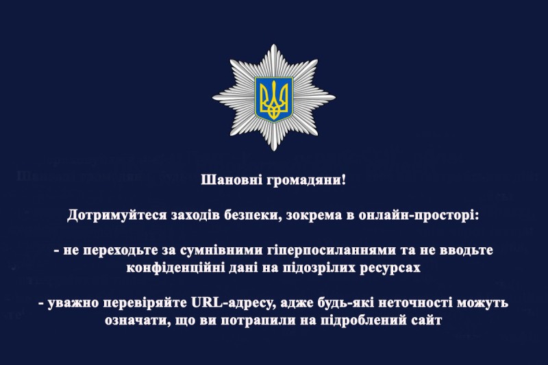 Не переходьте за сумнівними гіперпосиланнями та не вводьте конфіденційні дані на підозрілих ресурсах. Уважно перевіряйте URL-адресу, адже будь-які неточності можуть означати, що ви потрапили на підроблений сайт.