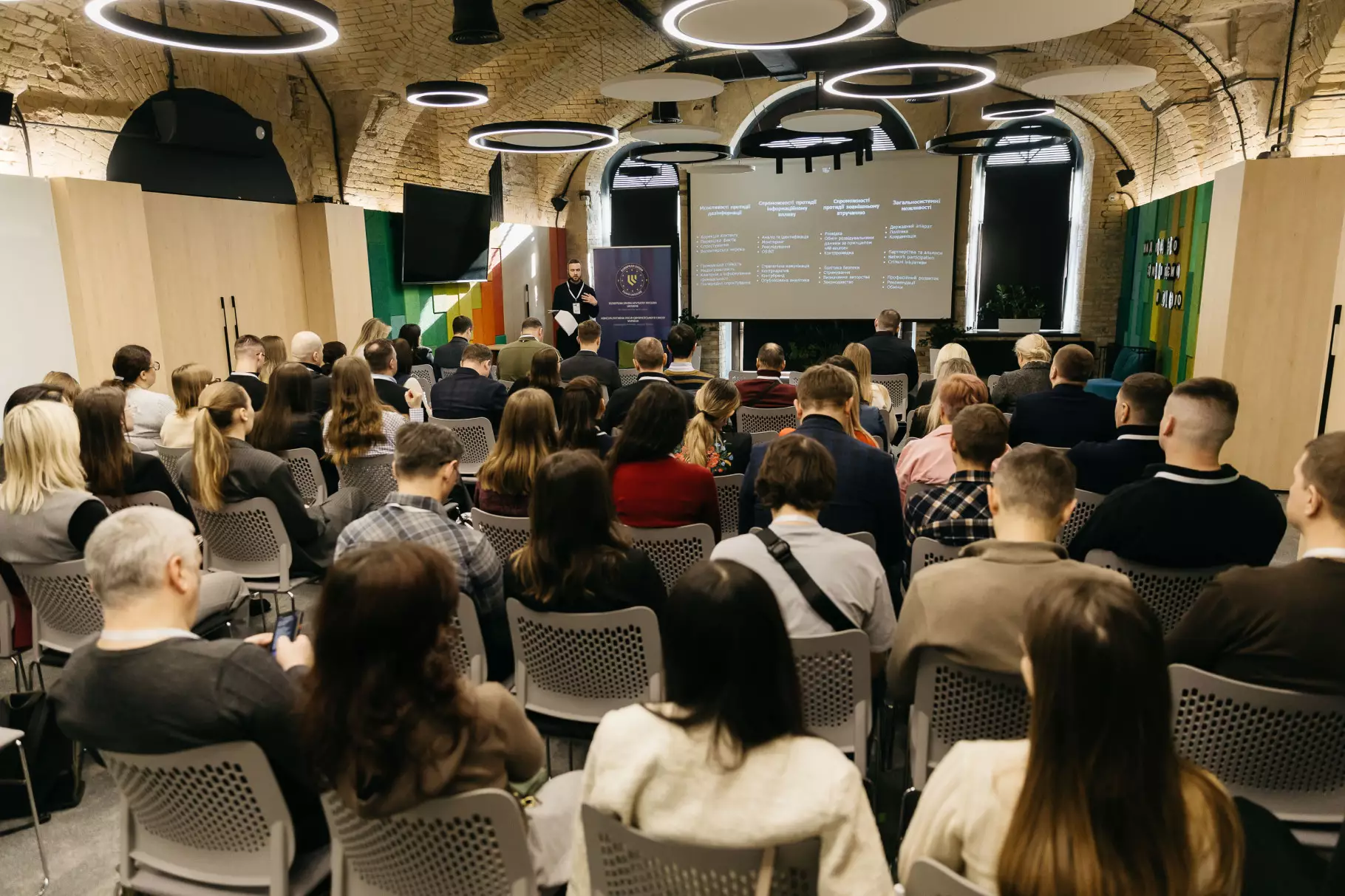 Учасники конференції активно брали участь в обговоренні презентацій спікерів та ставили їм питання щодо ефективних інструментів реагування на дезінформацію, методів протидії маніпуляціям, про засоби коректної та ефективної обробки візуальних матеріалів тощо.
