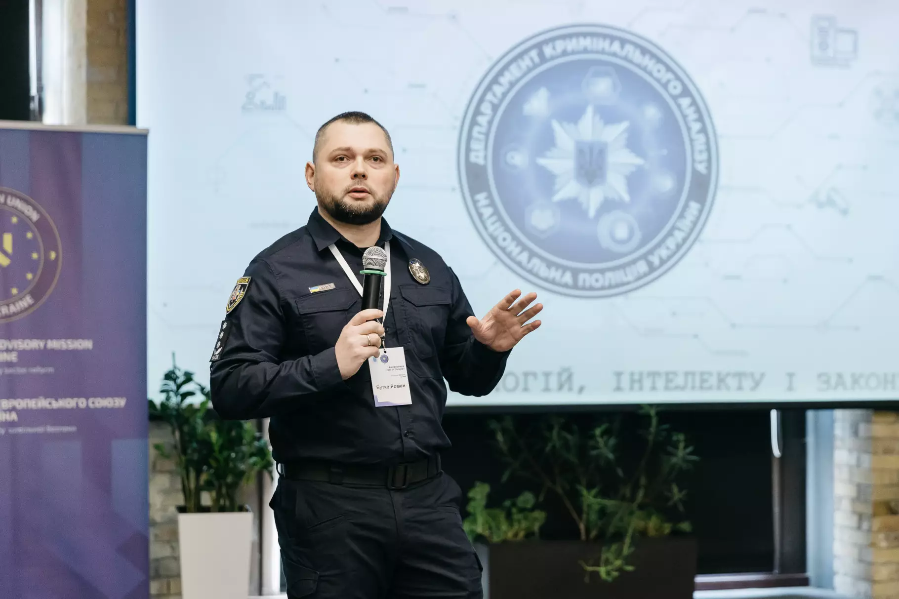 Начальник Департаменту кримінального аналізу Національної поліції України Роман Бутко представив слухачам презентацію «Розвиток аналітичних спроможностей правоохоронних органів».