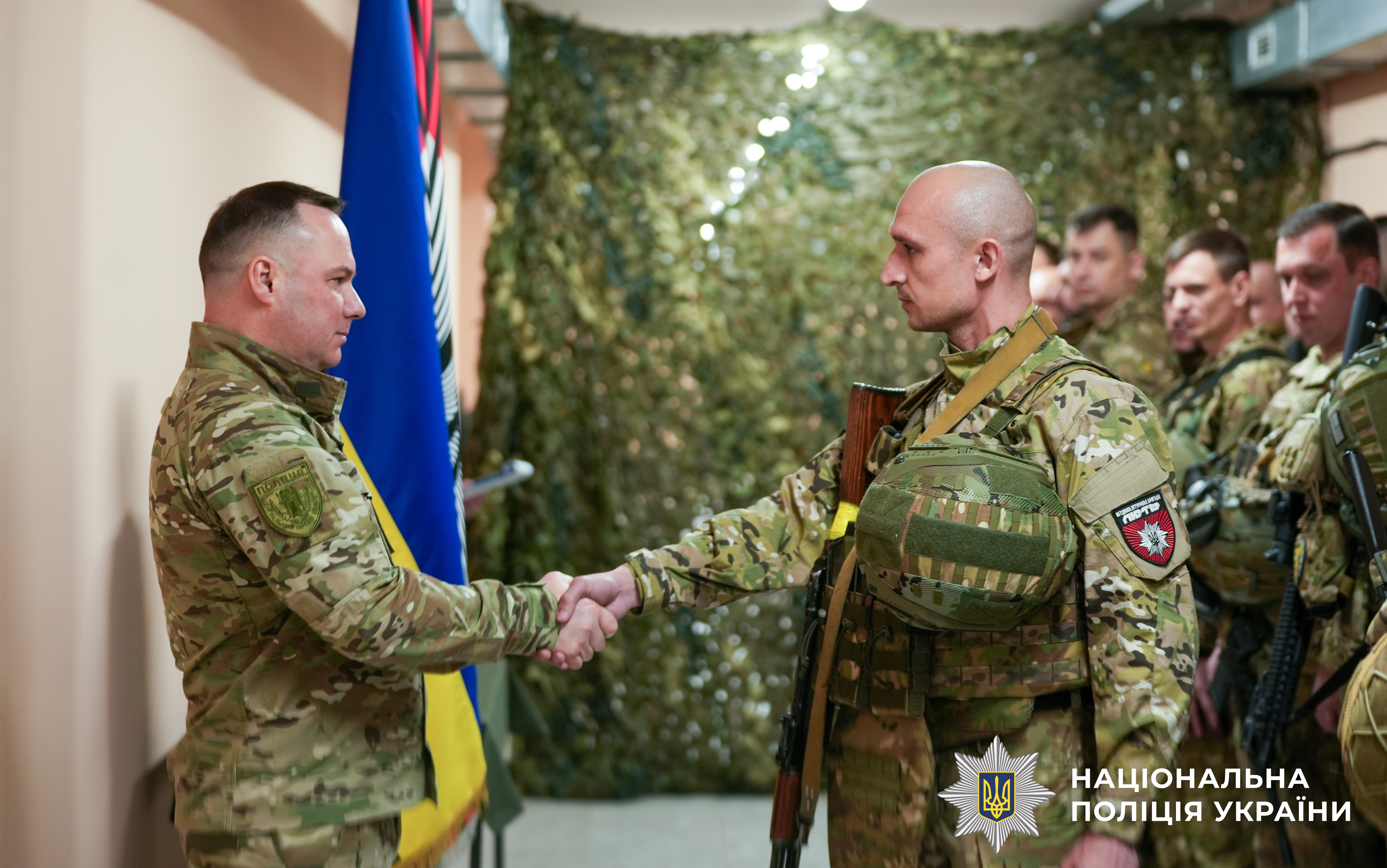 «Ви – хоробрі та потужні, ми з великою повагою та шаною ставимося до вас. Бажаю вам терпіння та витримки, і звісно, повернутися усім живими та неушкодженими до місць дислокації», - звернувся до бійців очільник Нацполіції.