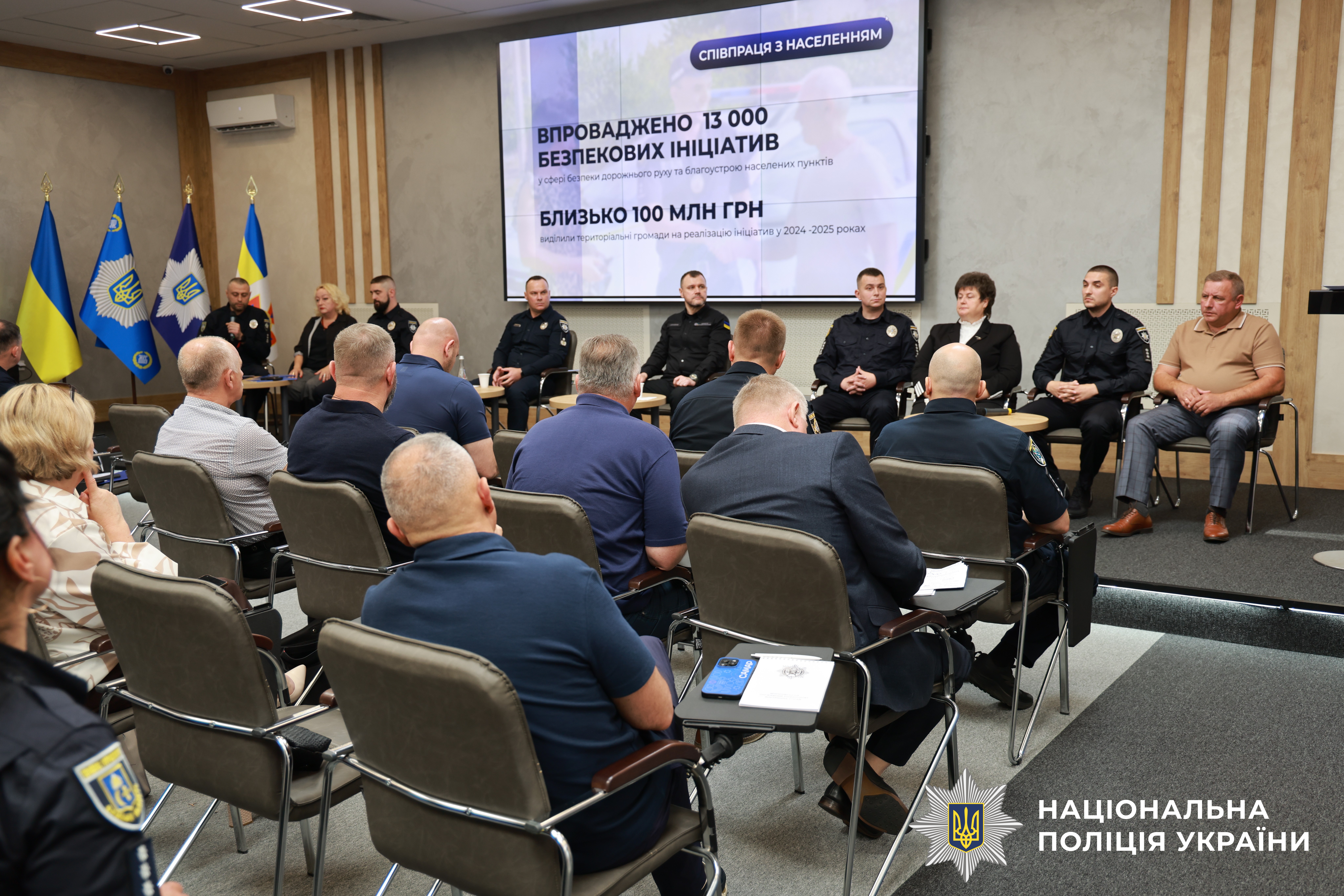 «Ключовим проєктом Нацполіції у сфері громадської безпеки є проєкт «Поліцейський офіцер громади», що базується на принципах Community Policing – партнерстві між поліцією та громадянами. Цей проєкт вже впроваджено у 1 032 територіальних громадах 23 регіонів України, у яких працює 2 316 поліцейських офіцерів громади. Для зручності та безпеки громадян створено 1 297 поліцейських станцій».