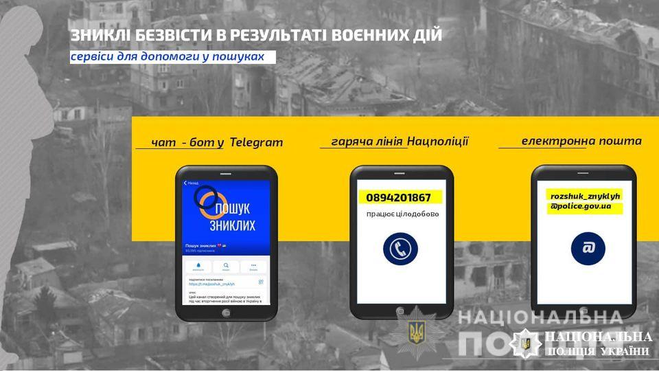 - Скористайтесь чат-ботом t.me/poshuk_znyklyh