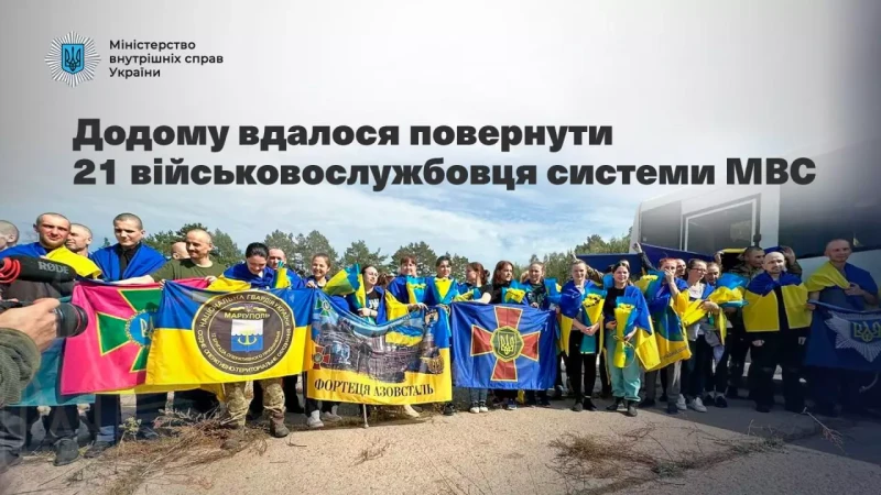 Міністр внутрішніх справ України Ігор Клименко у своєму офіційному Telegram-каналі повідомив, що 13 вересня вдалося повернути на Батьківщину 21 захисника та захисниць системи МВС в рамках обміну полоненими.
