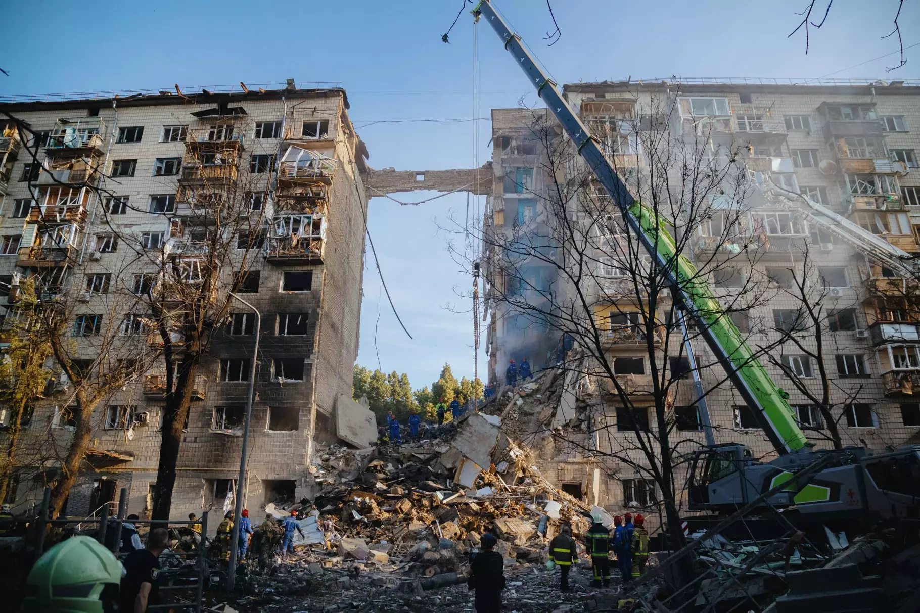 Глава МВС уточнив, що у дев’ятиповерхівку влучила крилата ракета, яка зайшла на рівні четвертого поверху. Вибух був такої сили, що вся конструкція під’їзду склалася.