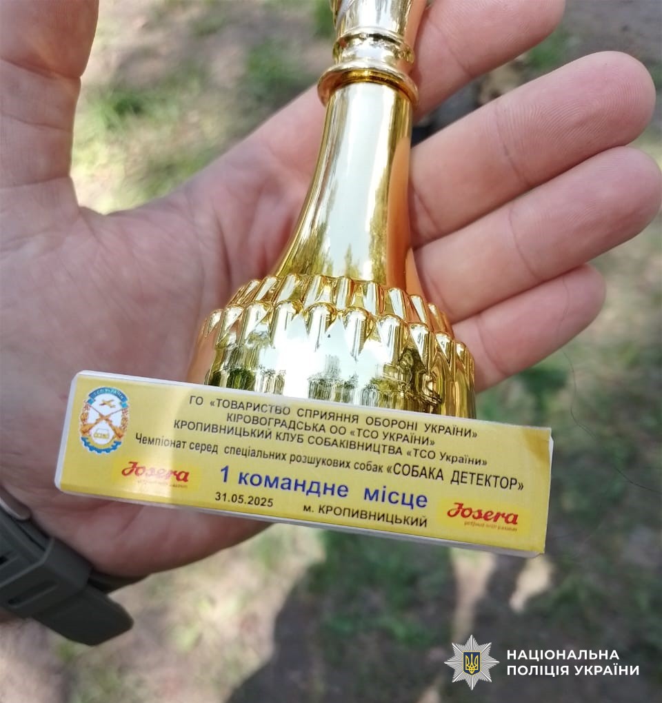 У межах чемпіонату учасники з чотирилапими напарниками змагалися у пошуку зброї та вибухових речовин. За підсумками спеціальних випробувань поліцейські кінологи разом із службовими собаками посіли 1 командне місце.
