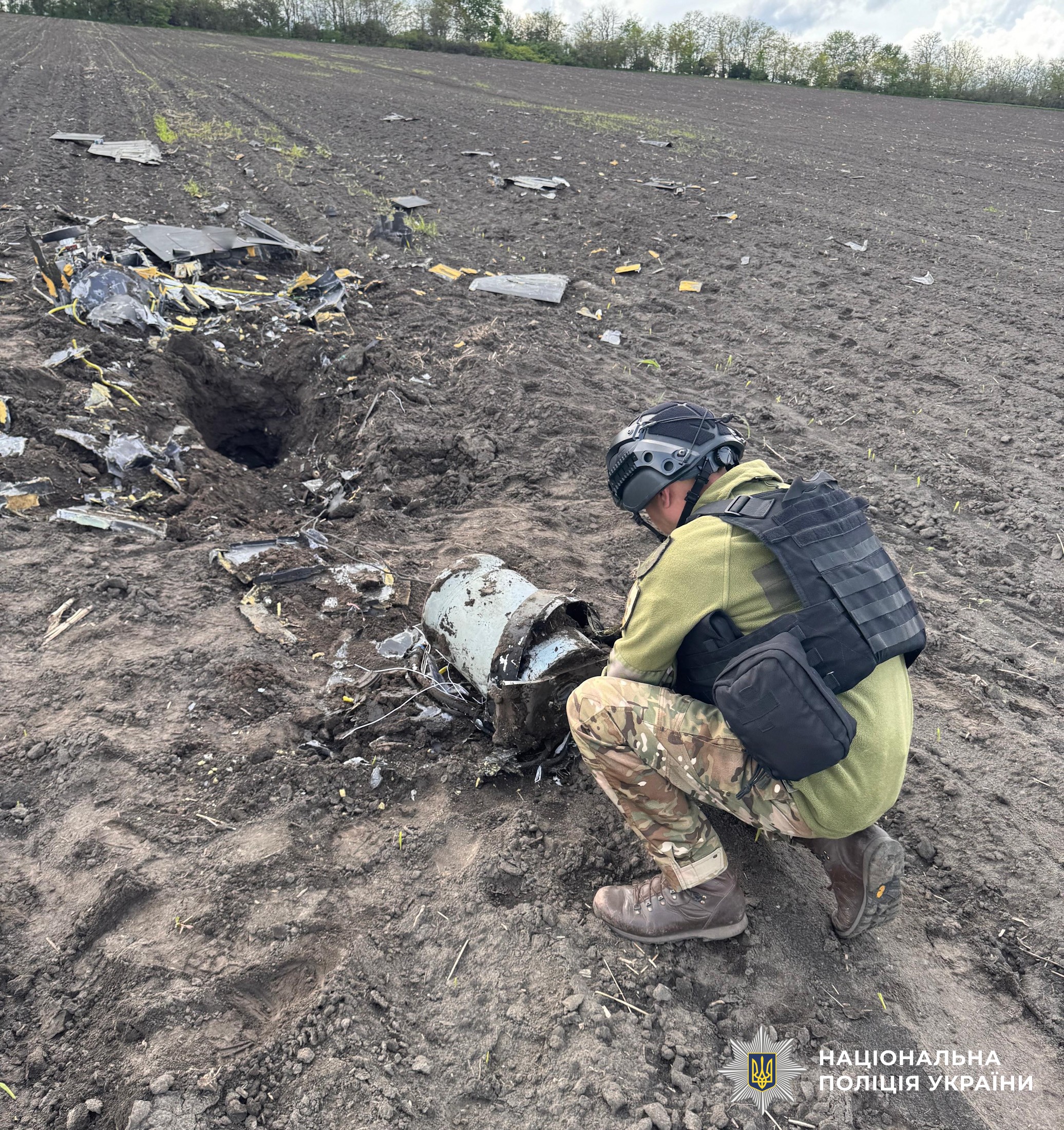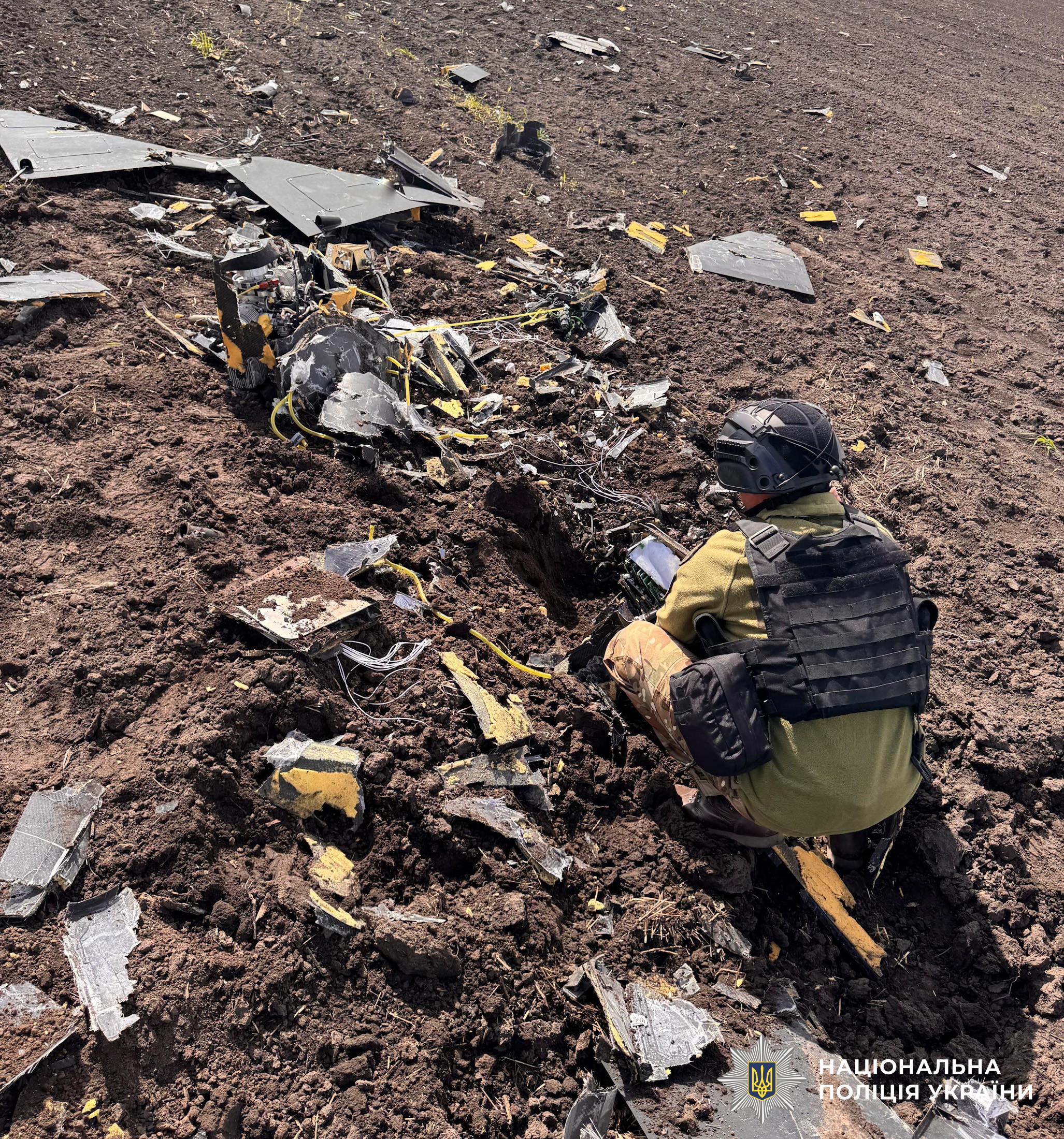 Фахівці отримали повідомлення про виявлення на території області збитого БпЛА та прибули на місце. Під час обстеження з’ясували, що бойова частина безпілотника заглибилась у землю і не здетонувала.