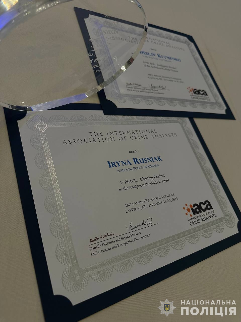 Фахівці Департаменту кримінального аналізу взяли участь у щорічному конкурсі аналітичних продуктів в рамках 34-ї тренінгової конференції, що проводиться під егідою Міжнародної асоціації кримінальних аналітиків в штаті Невада. Інтелектуальні розробки українських поліцейських вибороли 1 та 2 місце у двох з шести номінацій конкурсу.