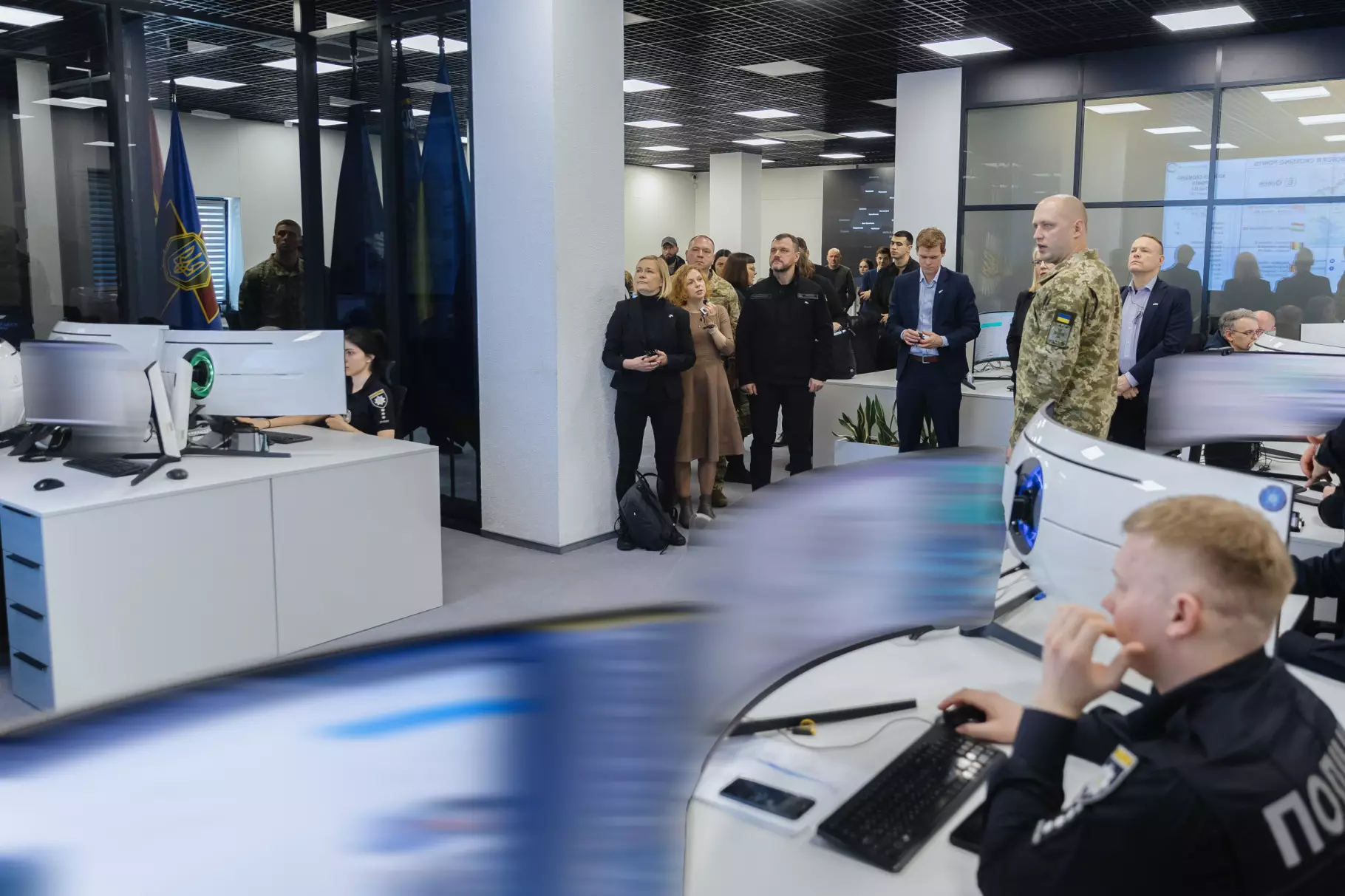 Потім фінська та українська делегації відвідали Ситуаційний центр МВС України, де мали змогу ознайомитися із сучасними технологіями моніторингу та аналізу безпекової ситуації в країні.