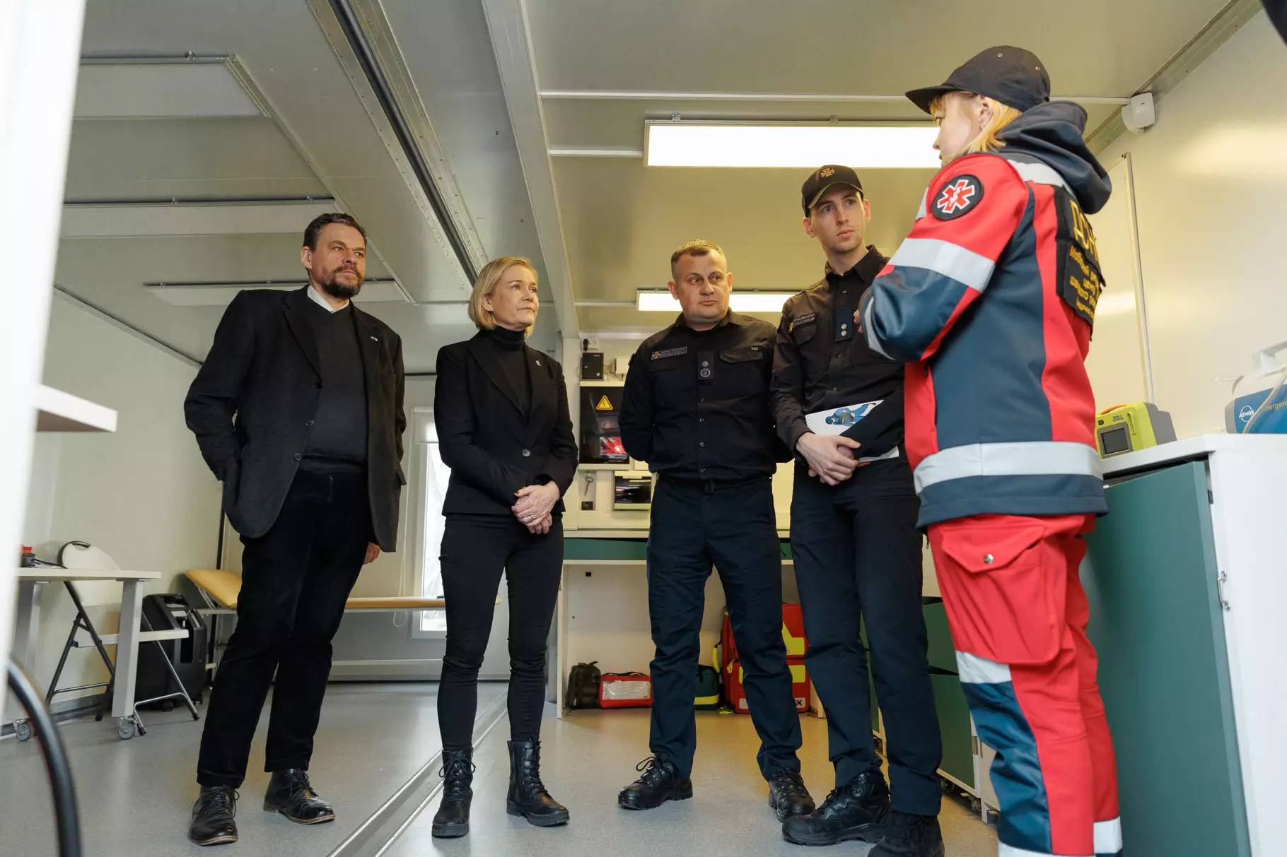 Окрім того, фінська делегація відвідала Департамент авіаційної безпеки МВС, де їй представили основні напрямки діяльності цього підрозділу. У рамках ознайомлення делегатів поінформували про роль авіації, яка включає літаки та гелікоптери, що активно використовуються в Національній поліції України, Національній гвардії України, Державній службі України з надзвичайних ситуацій та Державній прикордонній службі України, зокрема і при транспортуванні поранених осіб.