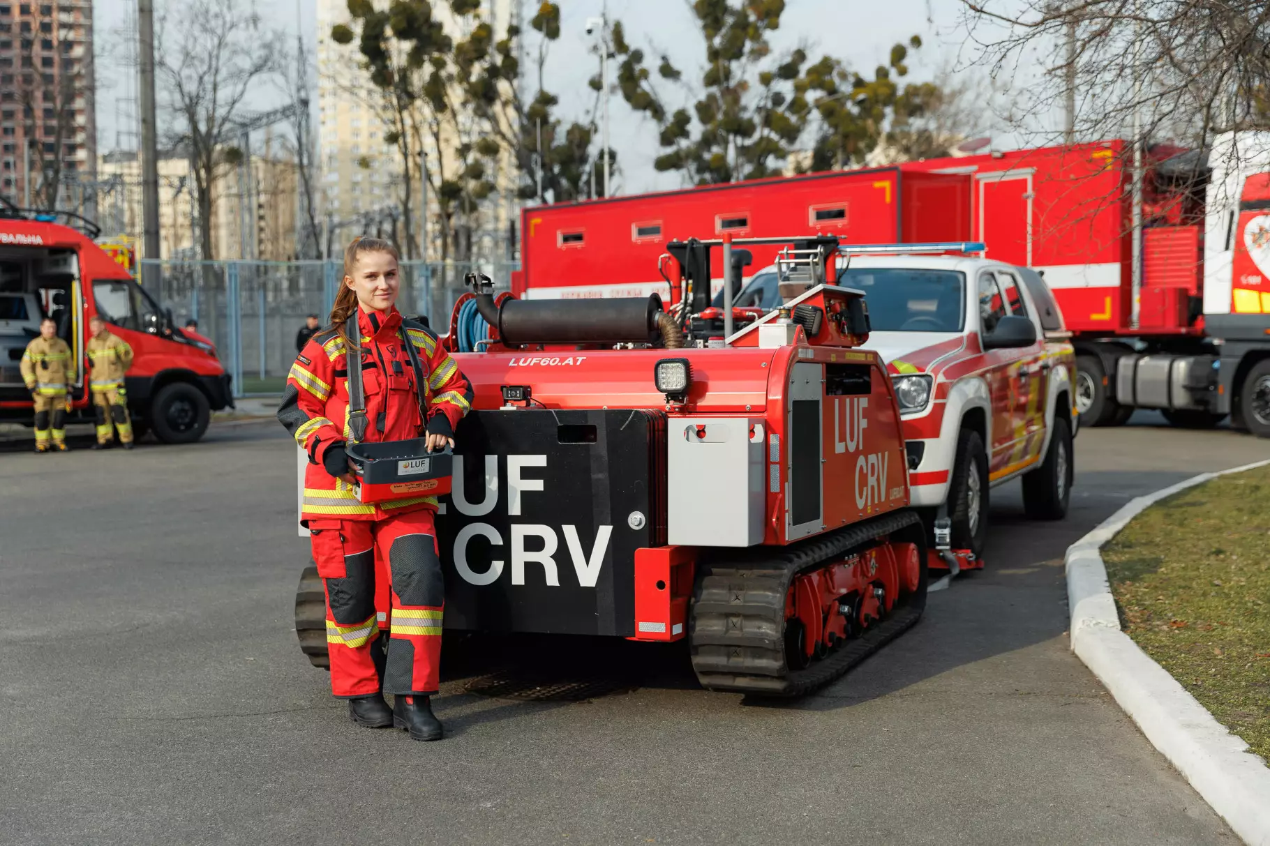 Також Андрій Даник продемонстрував сучасні снігоболотоходи «Богун» та пожежні катери, механізованих роботів, які не лише автономно й дистанційно можуть гасити пожежі, а й розміновувати території від вибухонебезпечних предметів.