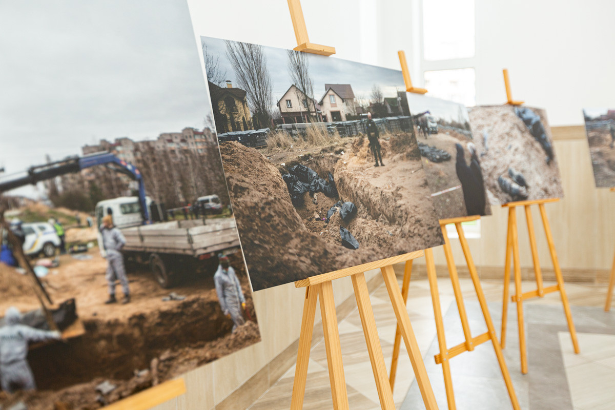 Спершу Ігор Клименко показав Каї Каллас фотовиставку з кадрами закатованих російськими загарбниками цивільних. Міністр внутрішніх справ розповів, що лише у Бучі за час російської окупації загинула 461 людина.