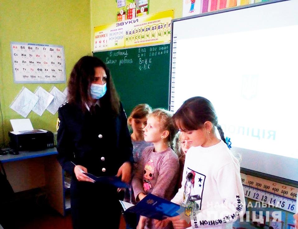 Під час спілкування з дітьми, поліцейська звернула увагу на важливість дотримання правил особистої безпеки під час навчання та у побуті, нагадала правила дорожнього руху.