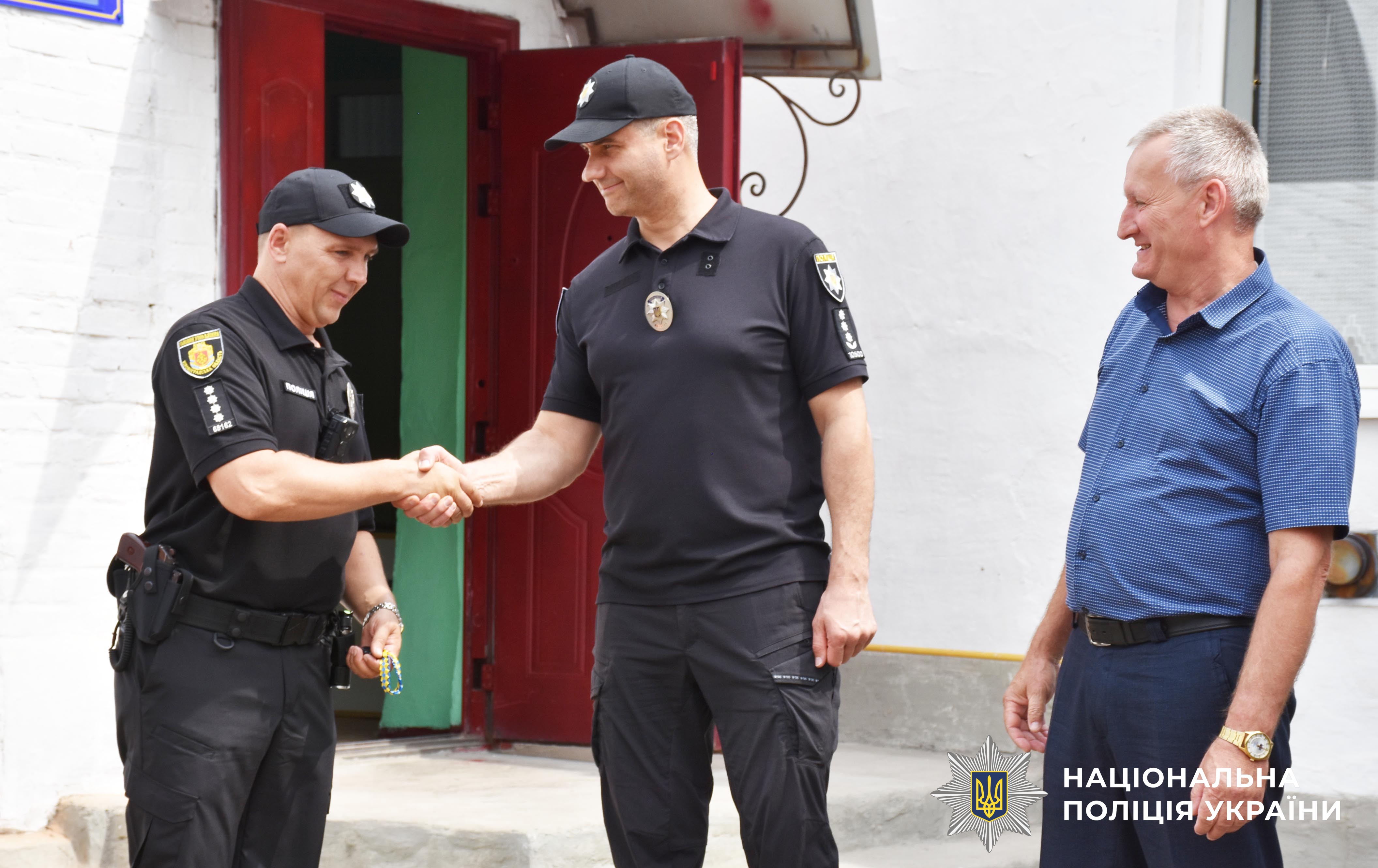 Присутнім представили поліцейського офіцера громади Михайла Логвиненка та вручили йому ключі від службового транспорту. Також оглянули робоче місце, облаштоване необхідною технікою.