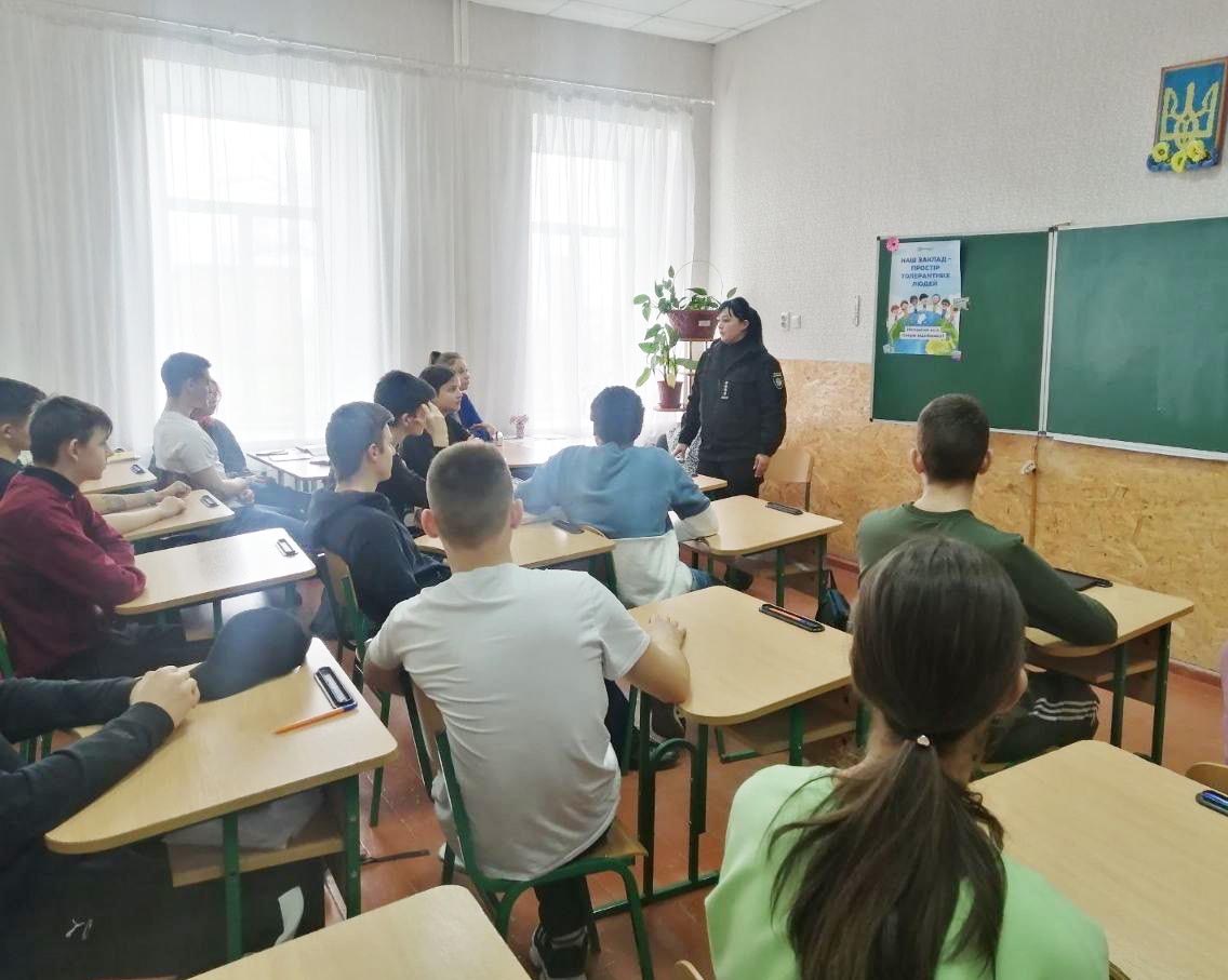 Просвітницькі заходи за участю поліцейських триватимуть по всій території області в усіх закладах освіти до завершення навчального року. Їх мета – створення безпекового середовища в учнівському середовищі, правове виховання дітей та молоді.