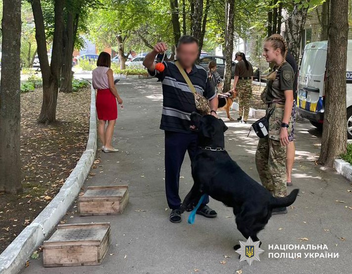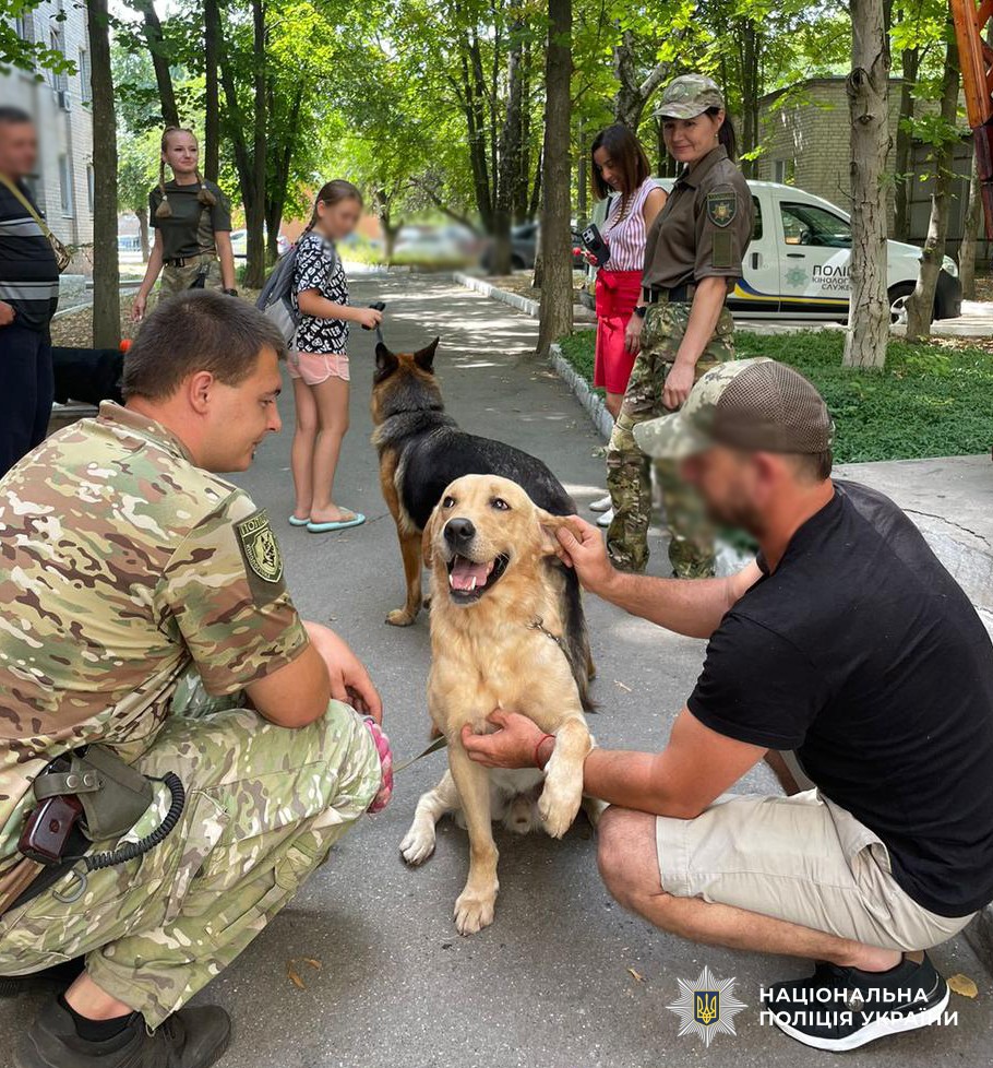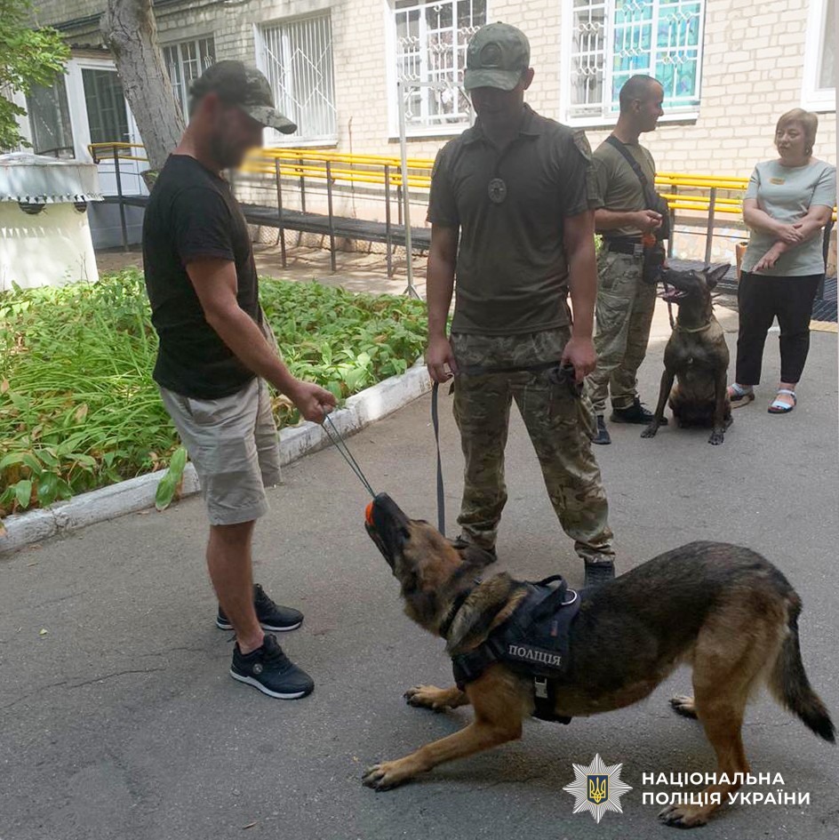 На початку зустрічі поліцейські продемонстрували присутнім навички підопічних із загального курсу дресирування та зокрема пошуку предмета.