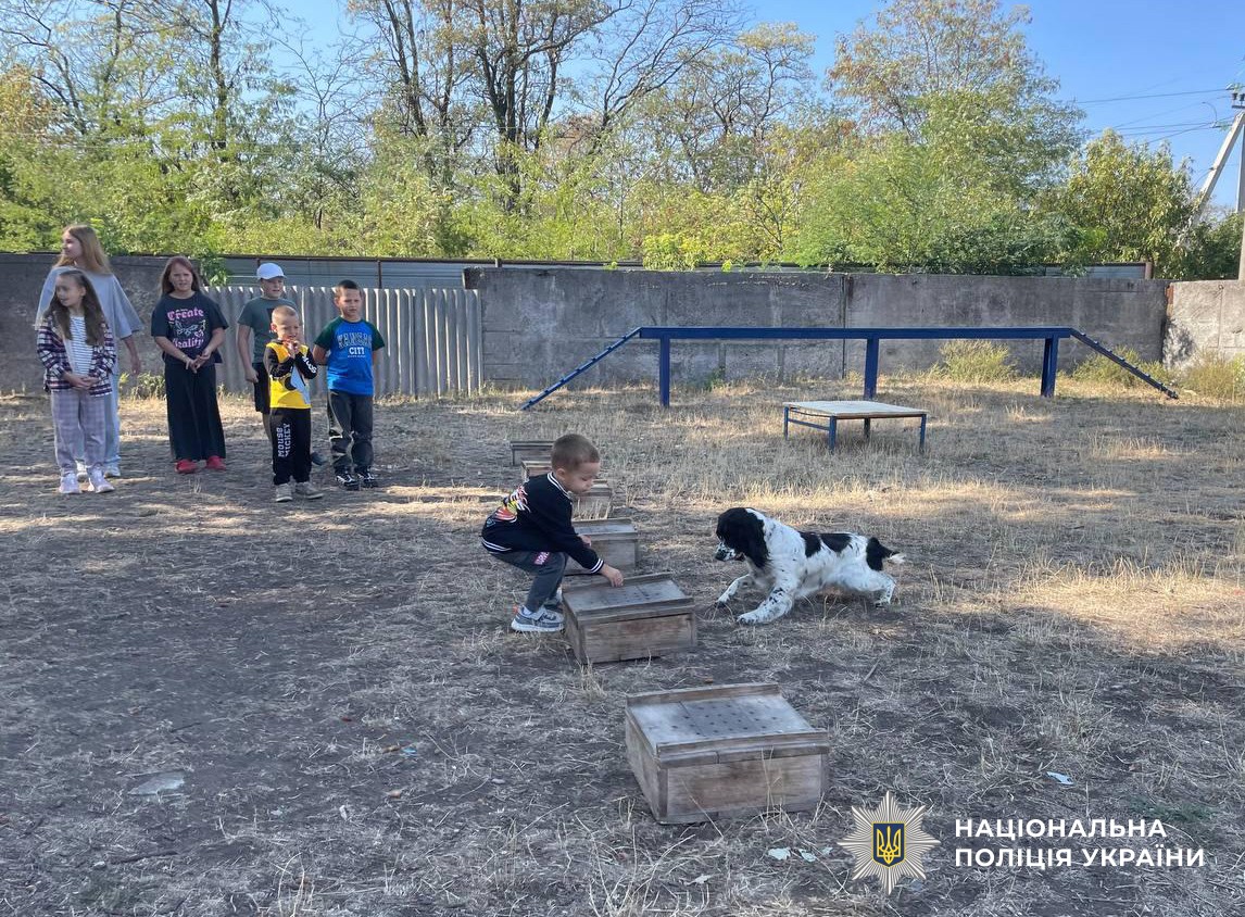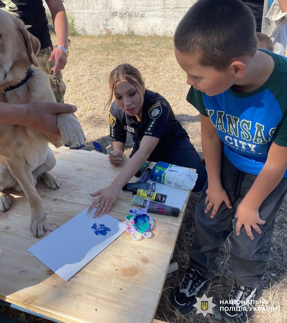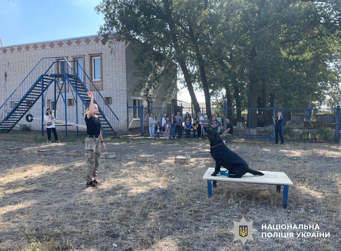 У межах прогами каністерапії заходи відбулися на базі кінологічного центру поліції області. Правоохоронці організували показові виступи службових собак.