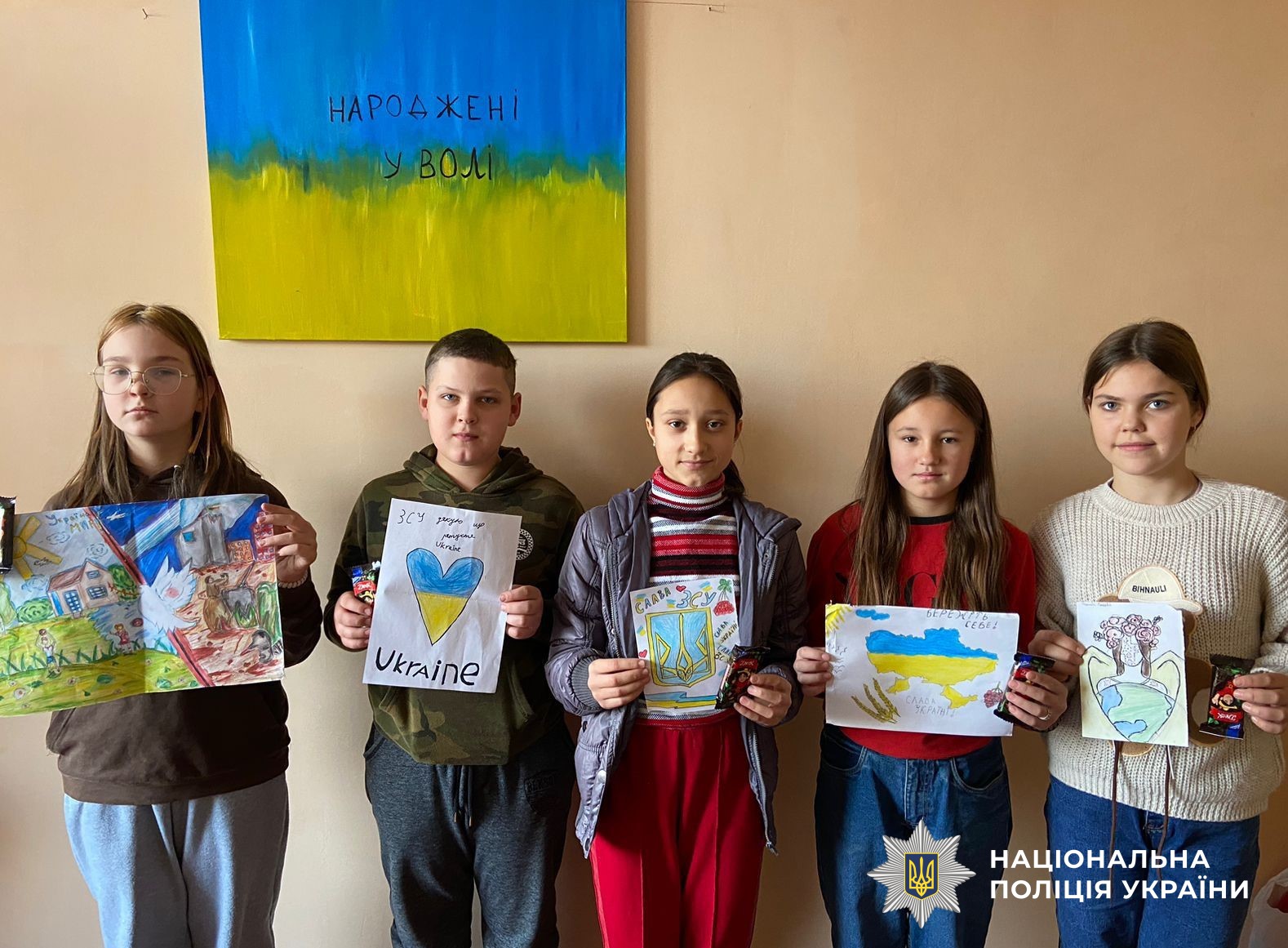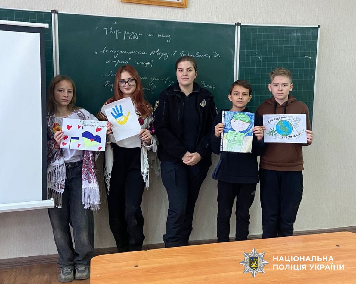У рамках заходу учні створювали малюнки та мотиваційні листівки для військових. Усі учасники отримали цікаві сувеніри та смачні подарунки від поліцейських.