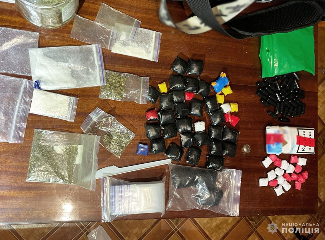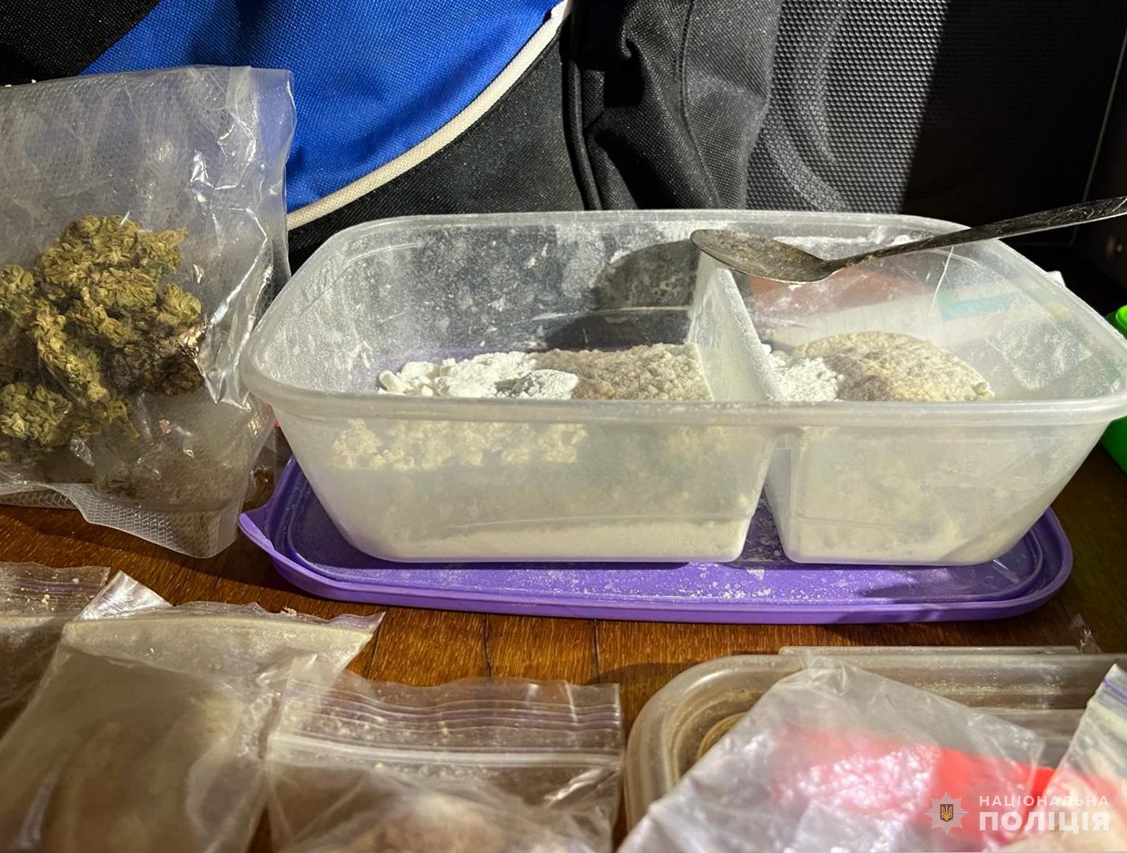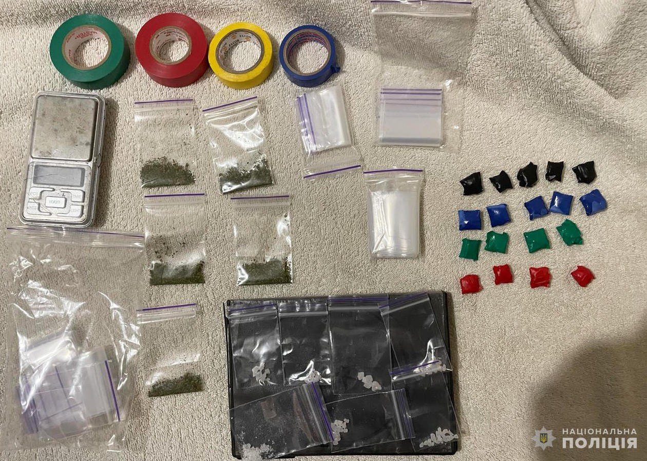 У результаті виявили та вилучили психотропні речовини - PVP, метамфетамін, амфетамін та мефедрон, наркотичний засіб - канабіс, «закладки» у кількості 152 штук і 30 мастеркладів, приладдя для фасування, електронні ваги, зіп-пакети, мобільні телефони, ноутбук, банківські картки.