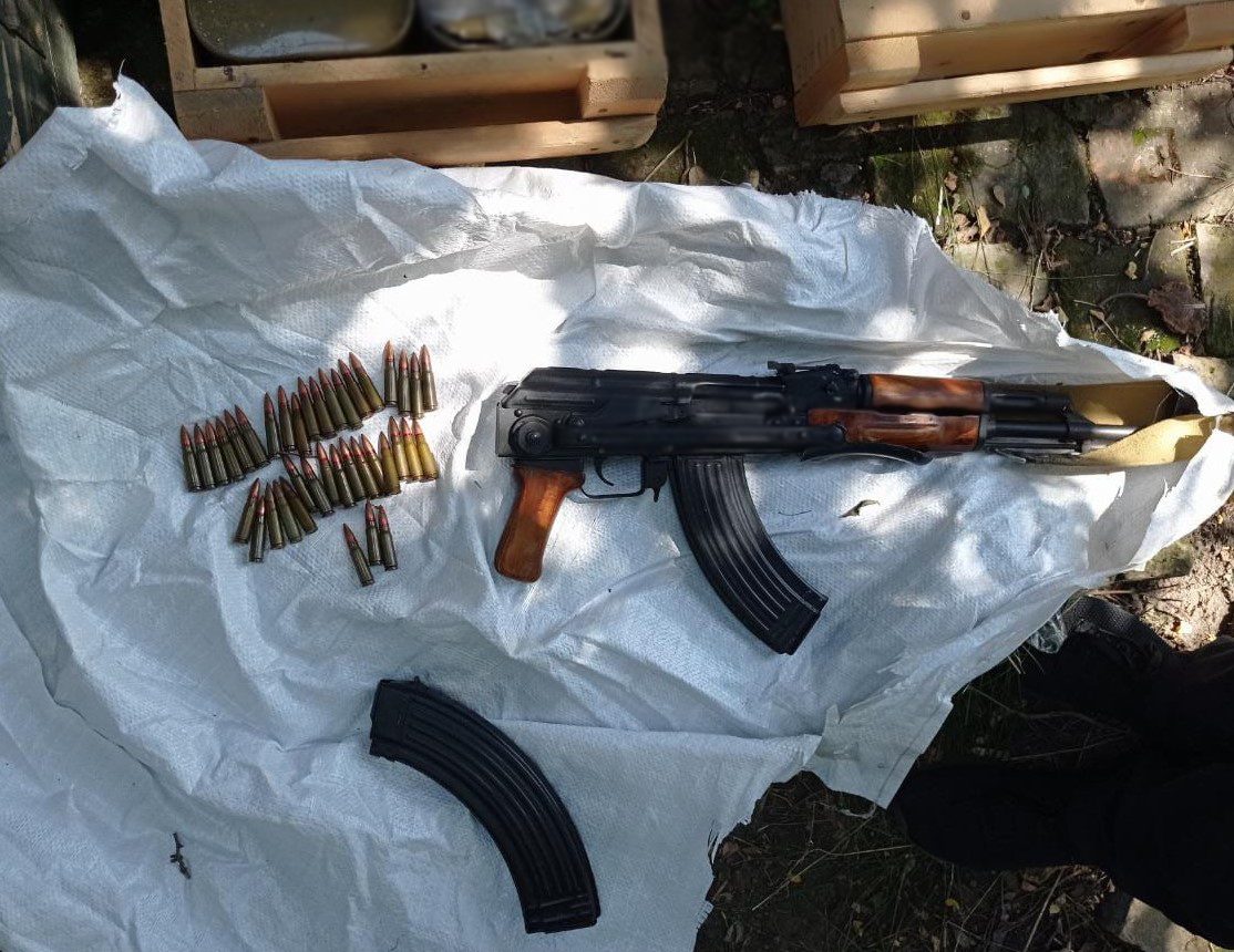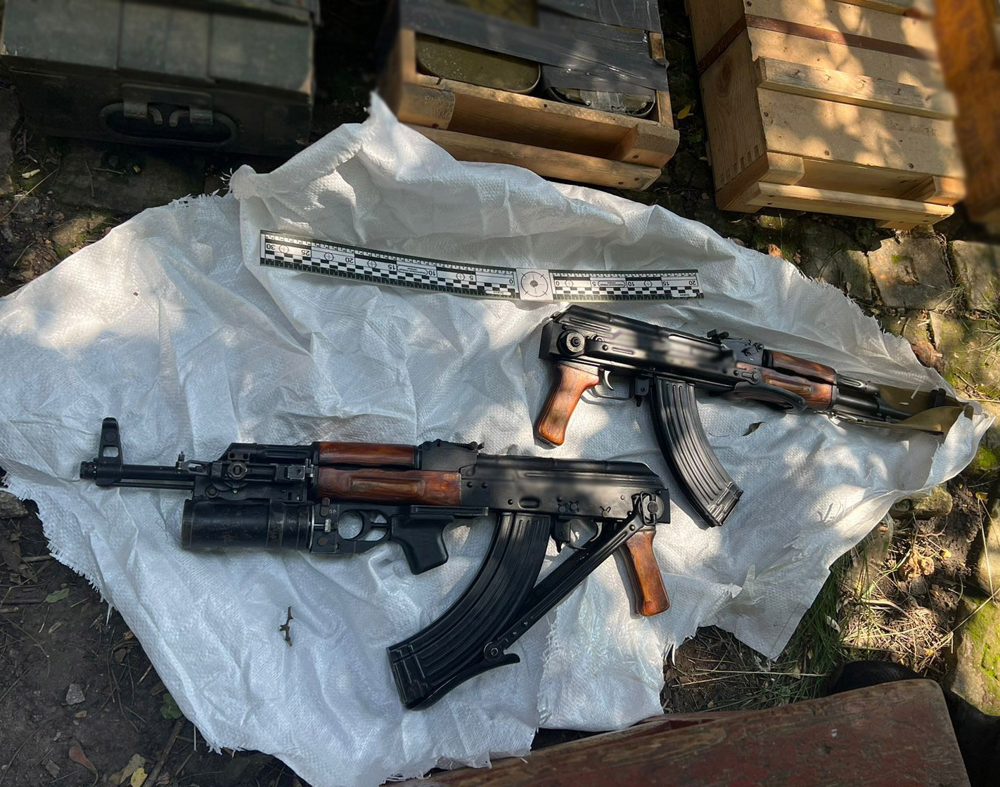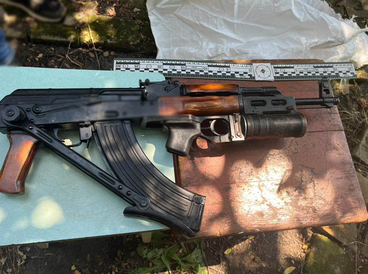 «Правоохоронці встановили, що чоловік зберігав у домоволодінні родички зброю та боєприпаси. У результаті проведення санкціонованого обшуку поліцейські виявили та вилучили два автомати «Калашникова» АКМС калібру 7,62 мм, підствольний гранатомет до автомата, 20 корпусів гранат Ф-1 та запали до них, а також понад сім тисяч набоїв калібру 7,62 мм та 5,45 мм.