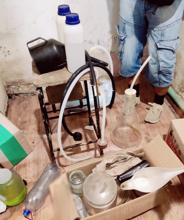 За силової підтримки бійців роти поліції особливого призначення, правоохоронці провели низку санкціонованих обшуків, під час яких було вилучено близько 2 кг розфасованого метамфетаміну – майже 8 тисяч доз, більше кілограма канабісу, близько тисячі нарковмісних пігулок та 120 літрів прекурсорів. Крім того, вилучили лабораторне обладнання, сім гранат із запалами, дві тротилові шашки та два автомобілі, які учасники ОЗГ використовували у злочинній діяльності.