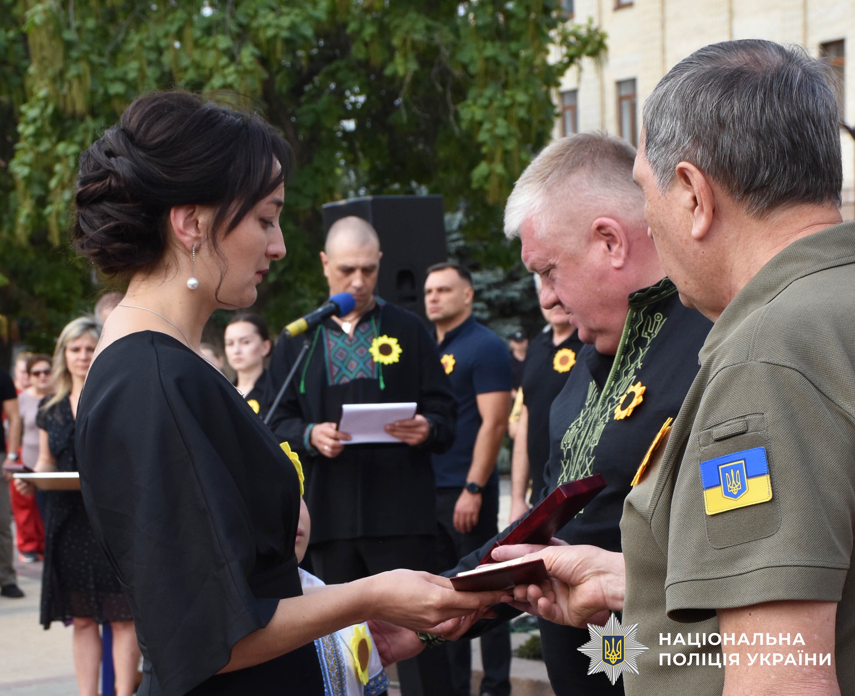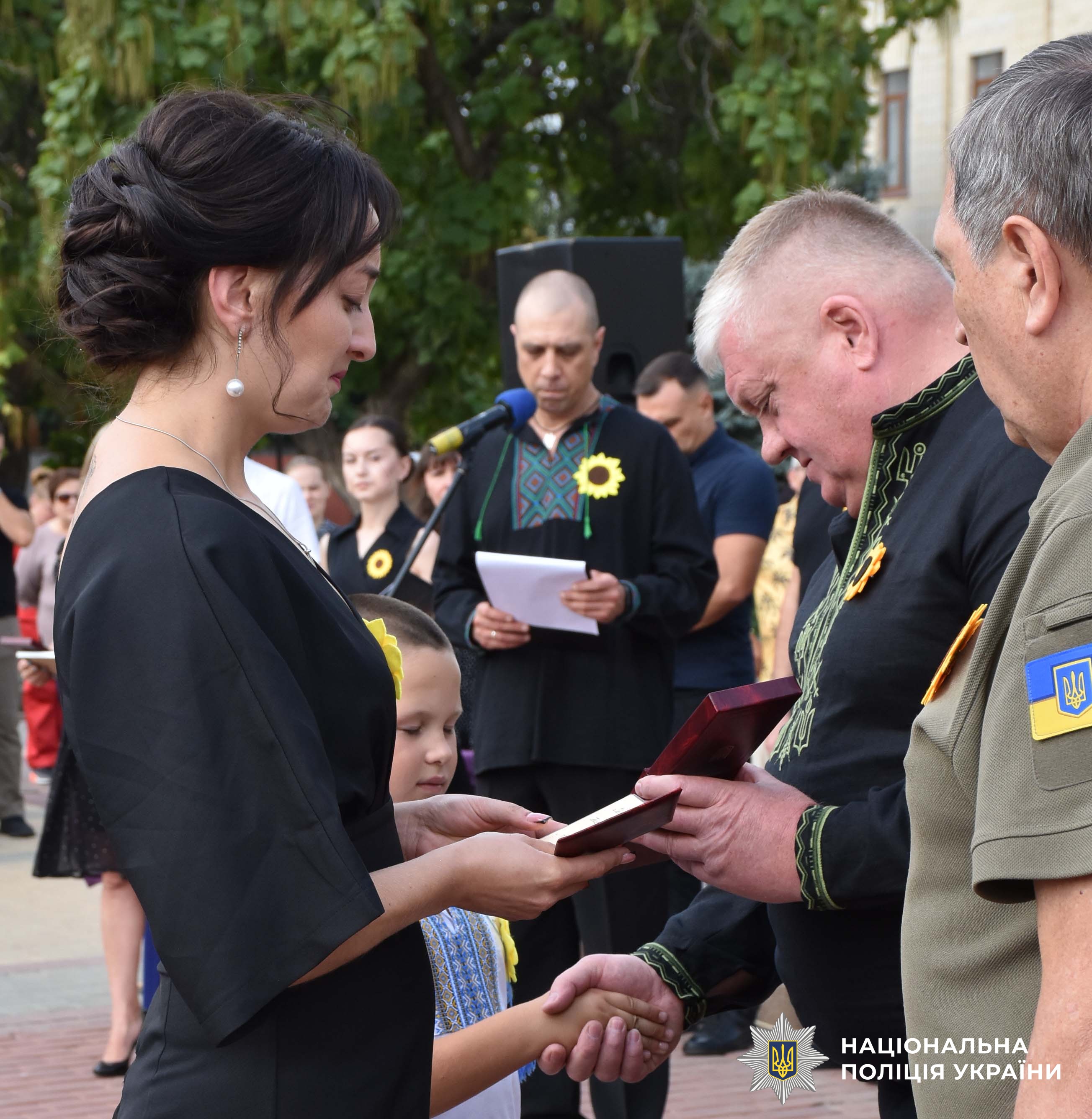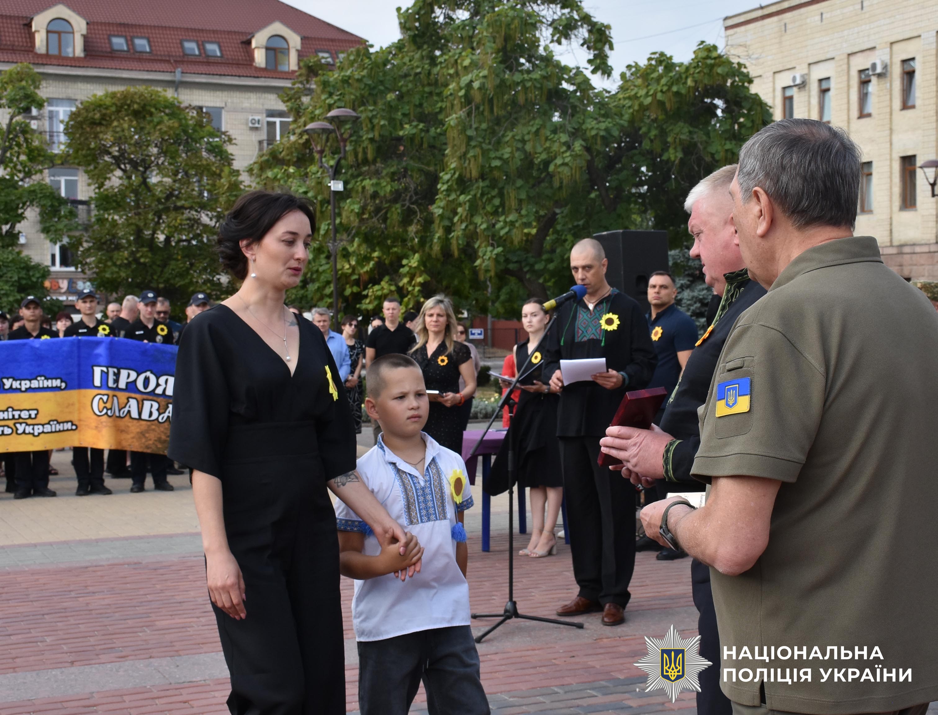 Вручення нагороди дружині та сину загиблого поліцейського відбулося під час заходів із нагоди Дня пам'яті захисників України, які загинули в боротьбі за незалежність, суверенітет і територіальну цілісність України.