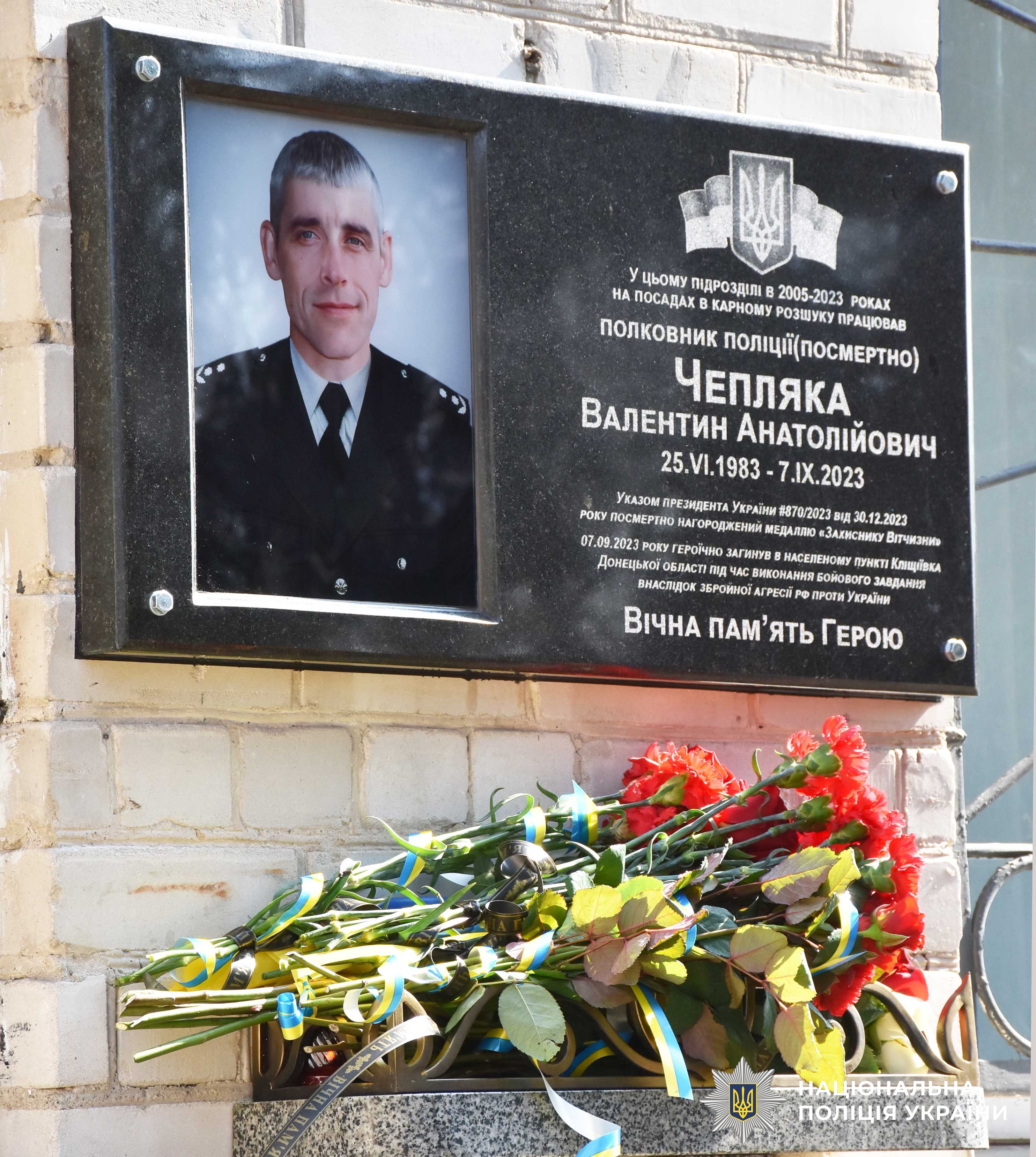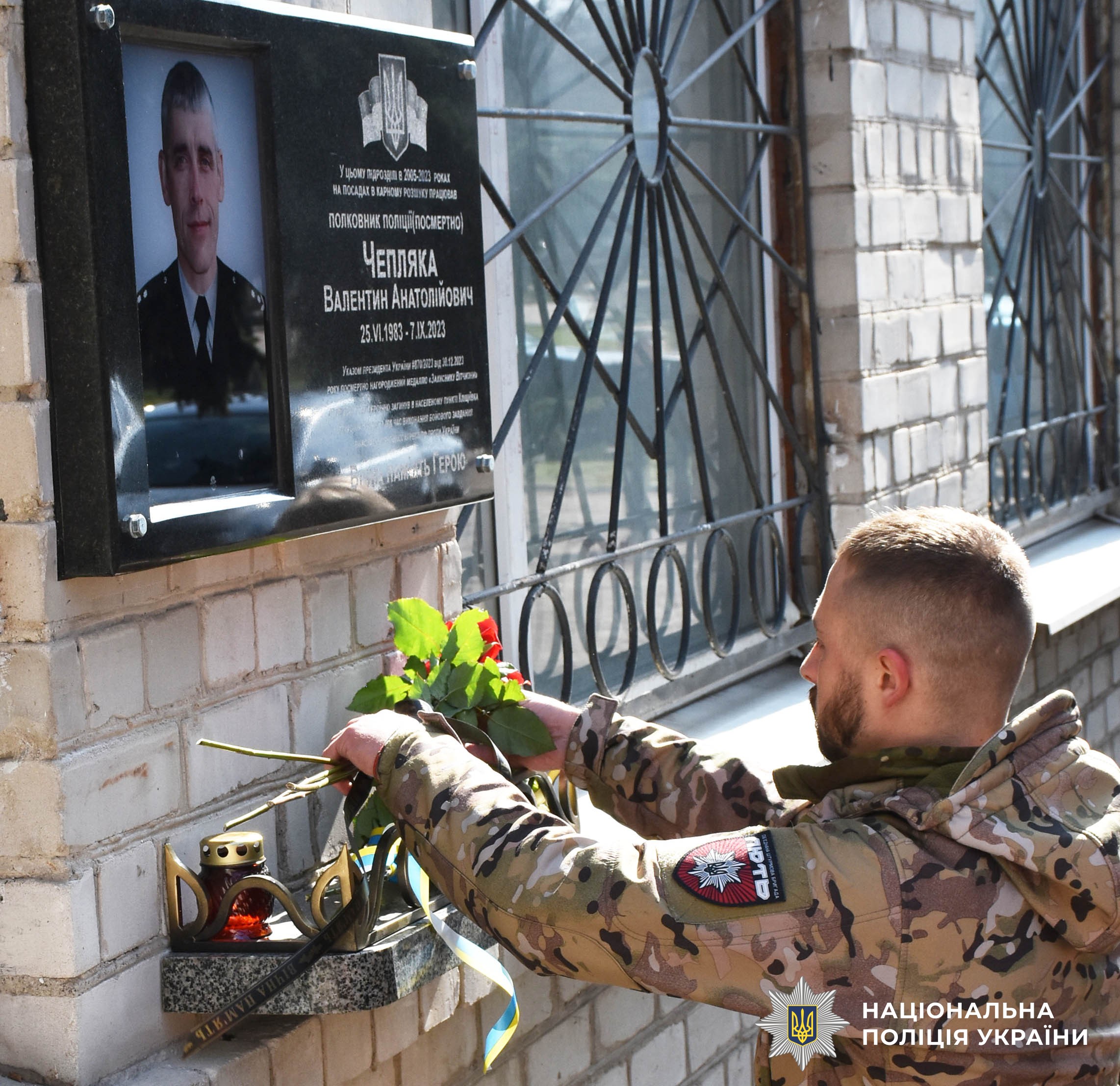 На Кіровоградщині відкрили меморіальну дошку на честь загиблого поліцейського Об’єднаної штурмової бригади «Лють» Валентина Чепляки