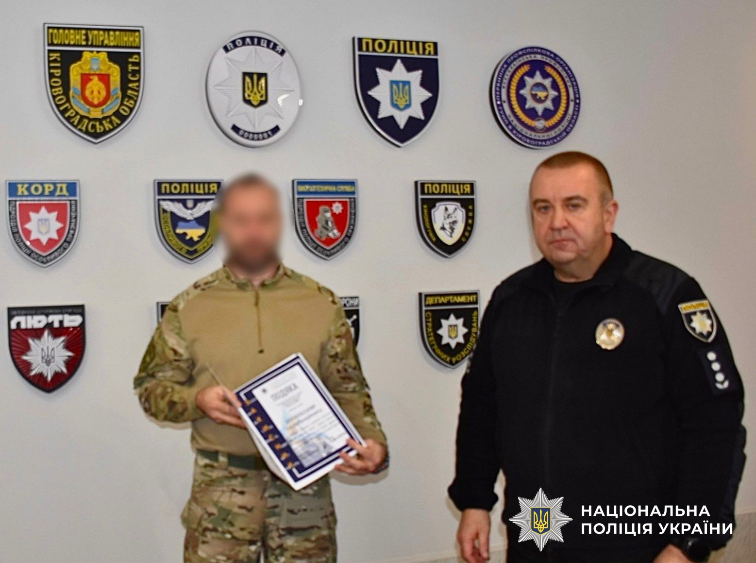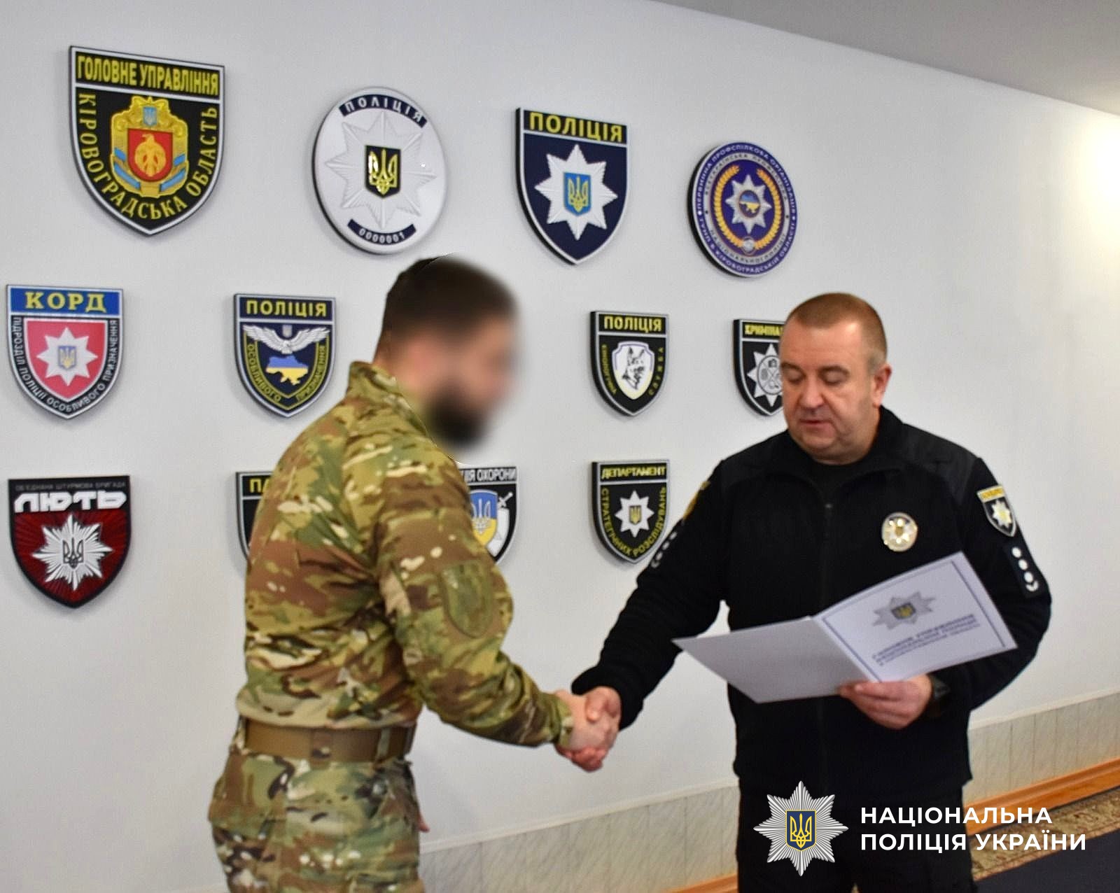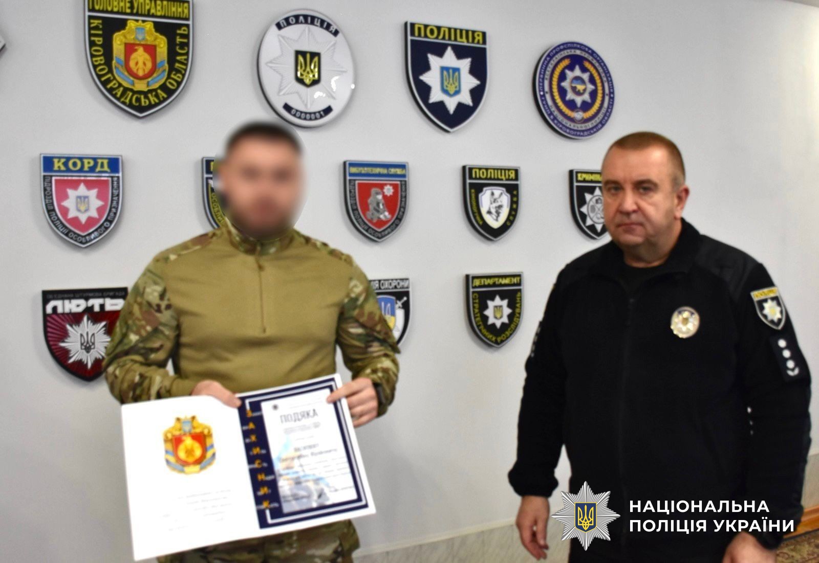 Під час зустрічі Андрій Дуброва вручив бійцям подяки Головного управління Національної поліції в Кіровоградській області за зразкове виконання службових обов’язків, виявлені мужність, героїзм і відвагу під час оборони держави.