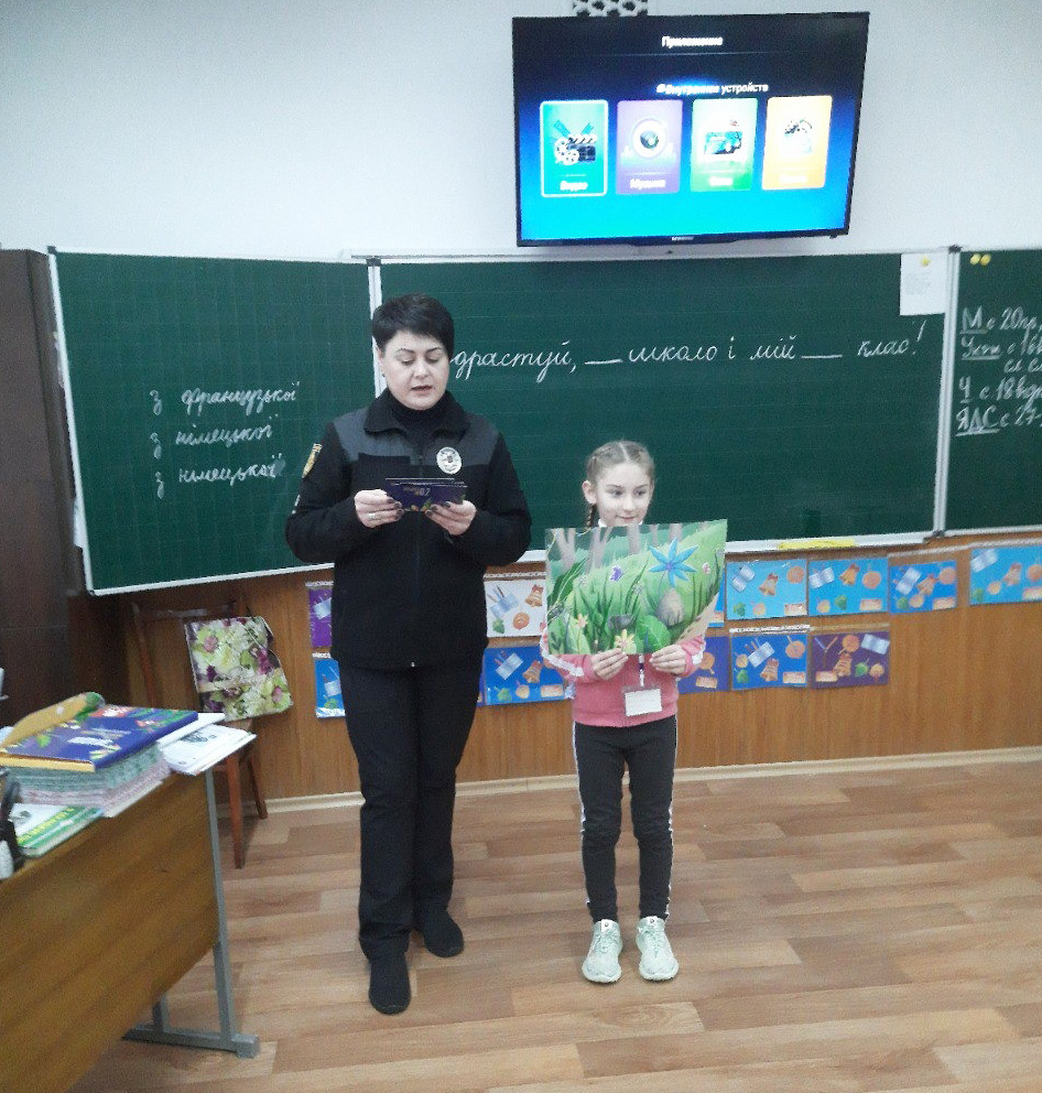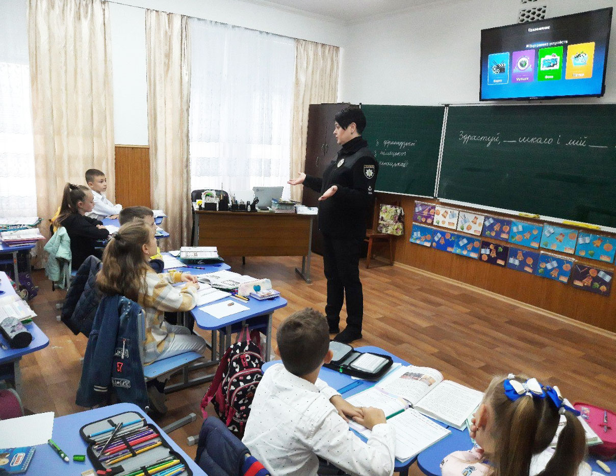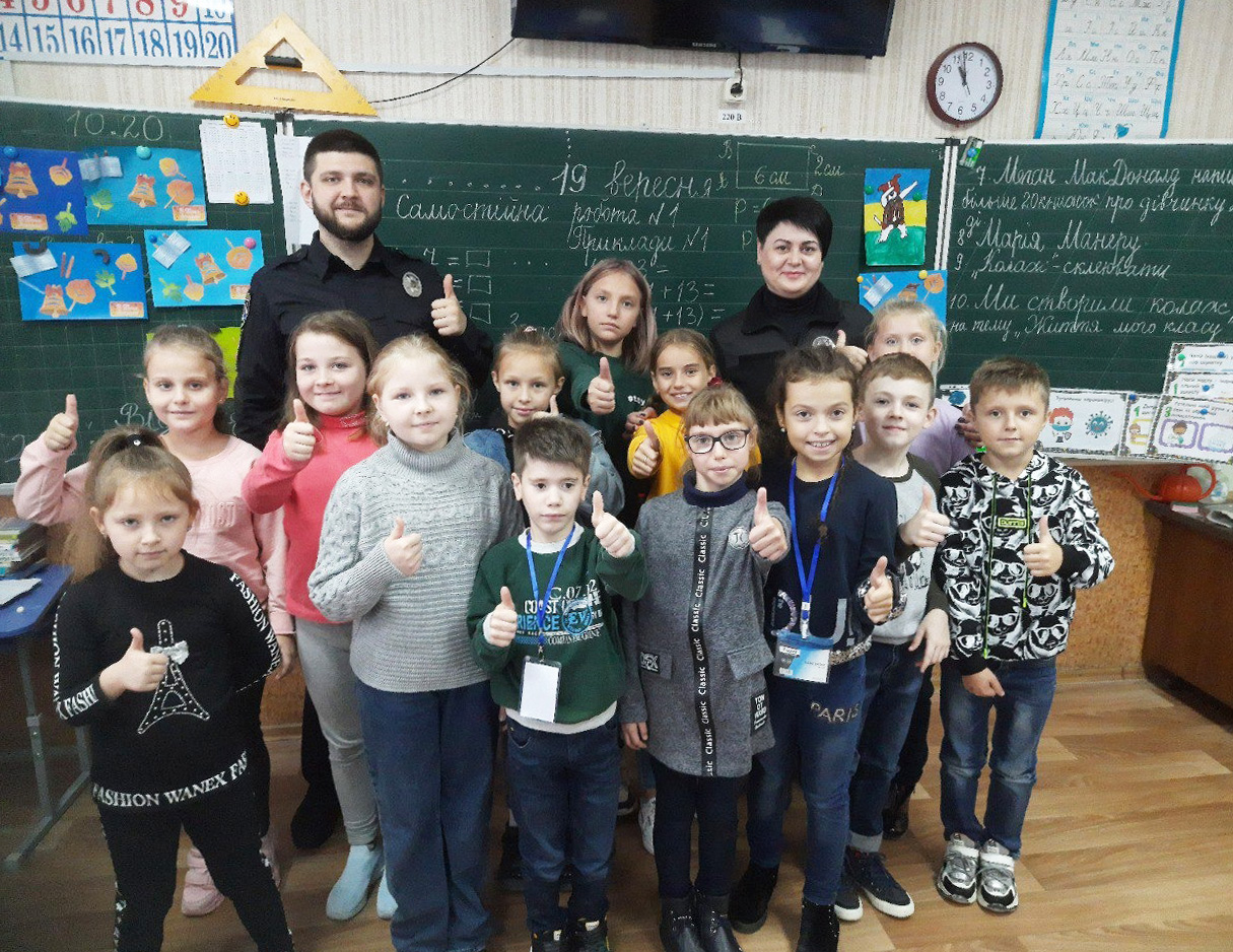 У Кропивницькому для учнів молодших та середніх класів навчання проводили старший інспектор сектору ювенальної превенції Кропивницького районного управління поліції Жанна Завгородня та інспектор управління патрульної поліції в області Антон Левандовський.