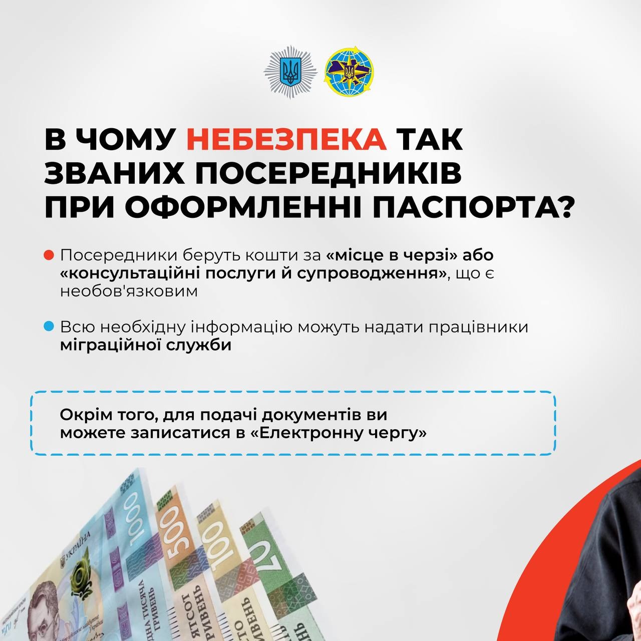 Учергове закликаємо вас не користуватися послугами так званих «посередників» під час оформлення паспортних документів.