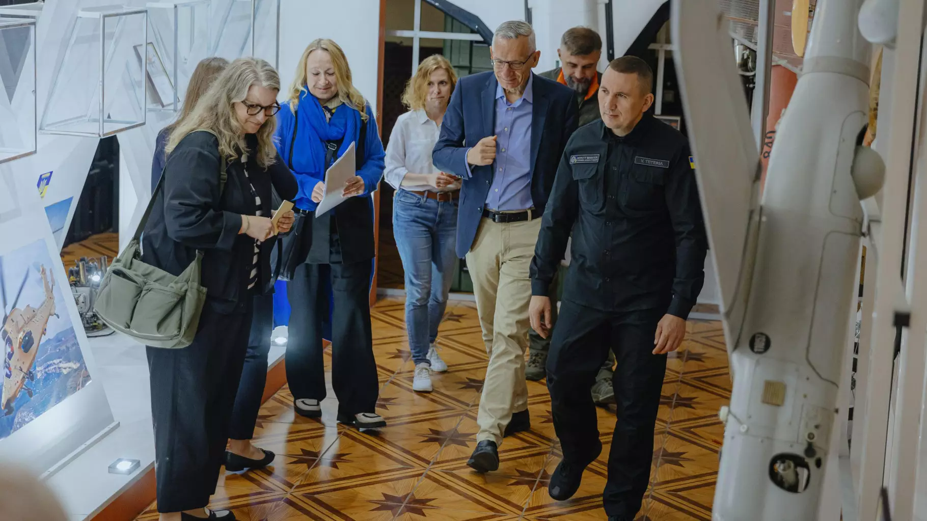 Принагідно міжнародні партнери ознайомилися із виставкою трофейної техніки противника, включаючи безпілотні літальні апарати типу «Шахед». Окрім того, Директор Департаменту авіаційної безпеки Сергій Науменко розповів делегації про сучасні системи сканування повітряного простору, ознайомив з можливостями радіоелектронної боротьби та розвідки, що застосовуються у підрозділах МВС України.
