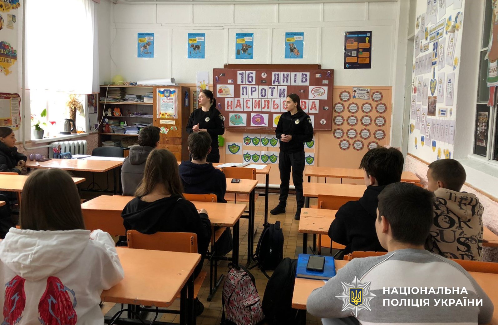 У рамках ініціативи, яка тривала з 25 листопада до 10 грудня, поліцейські проводили інформаційно-просвітницькі заходи у школах, допомагаючи учням, педагогам і батькам краще розуміти, як протидіяти насильству та захищати свої права.