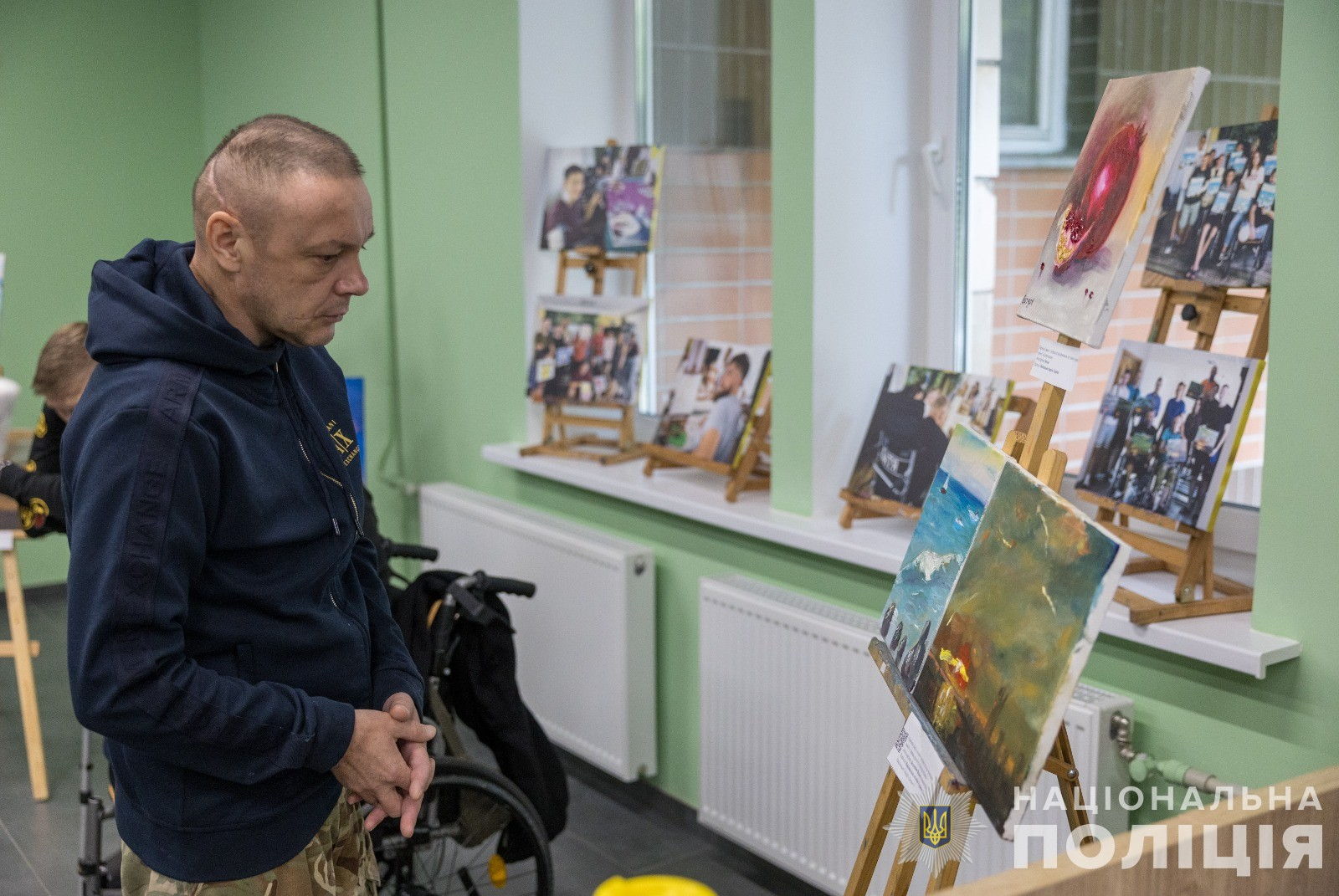 У стінах Головного медичного клінічного центру МВС України відбулась виставка живопису, де свої творчі доробки представили поліцейські, які проходять реабілітацію після отриманих поранень під час виконання службових обов’язків чи полону.