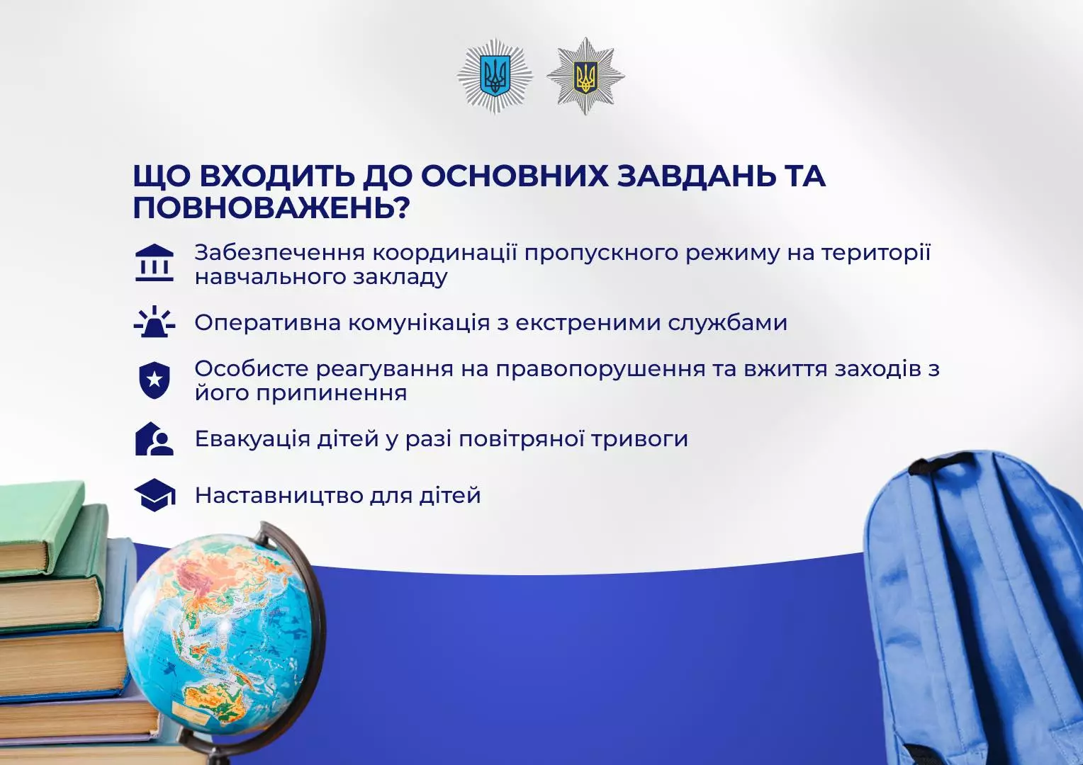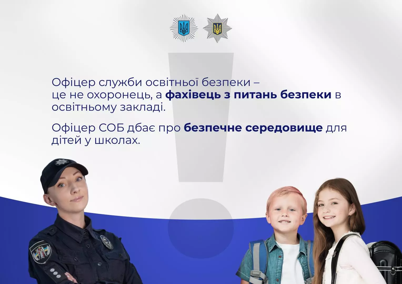 Офіцери служби освітньої безпеки забезпечують правопорядок та дбають про безпеку дітей у навчальних закладах.