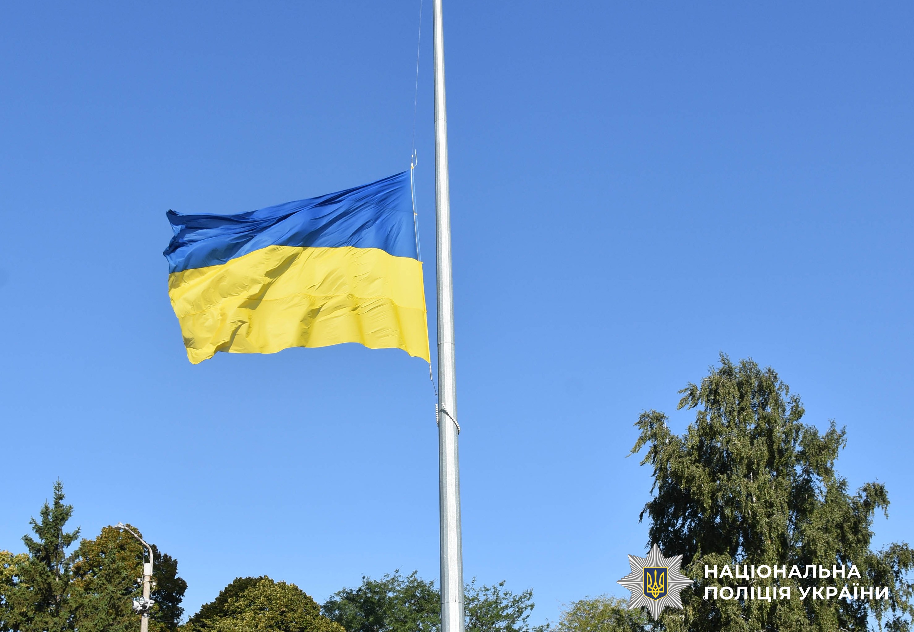 Після загальнонаціональної хвилини мовчання під звучання Державного гімну України відбулася церемонія підняття Державного прапора України.
