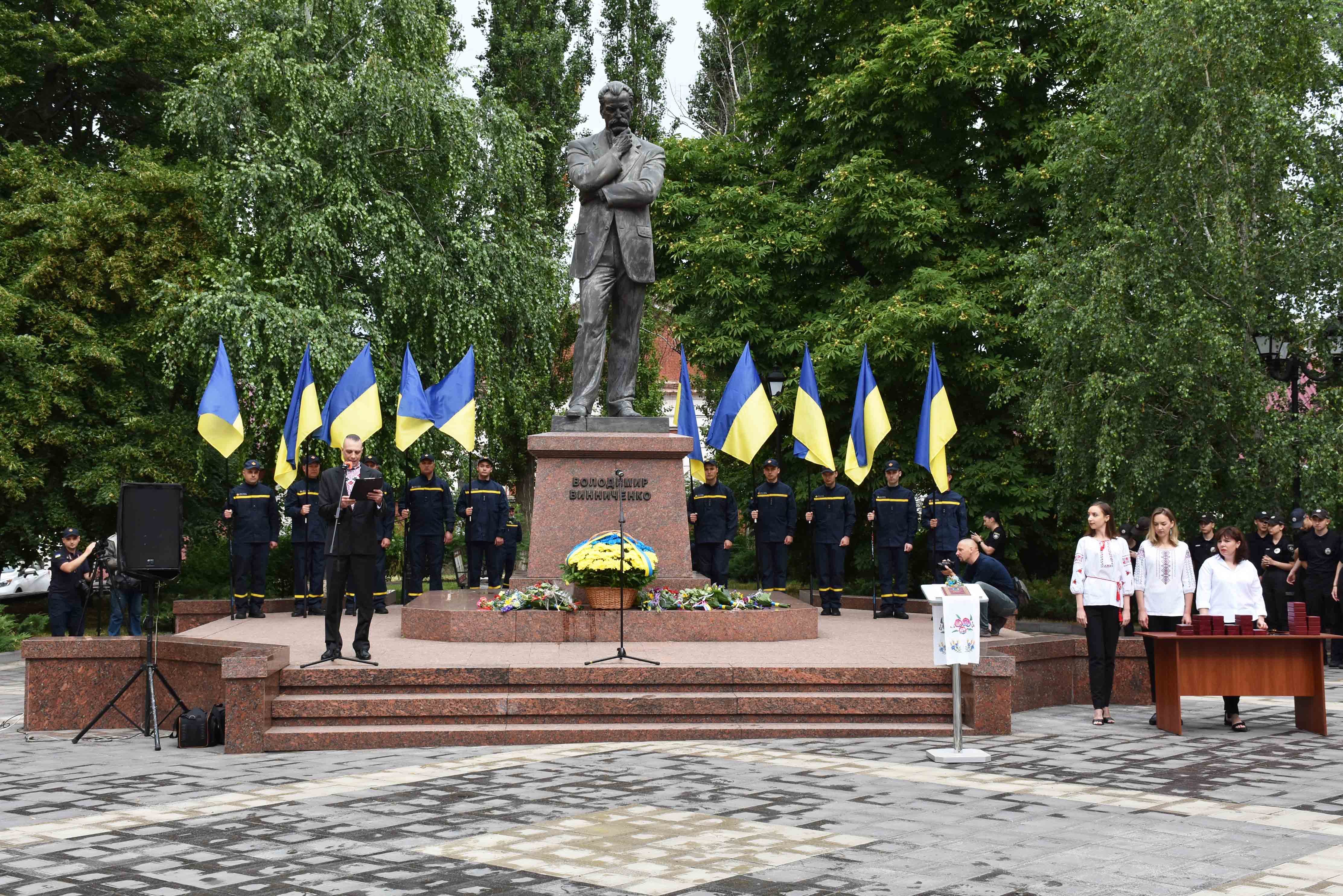 Присутні поклали квіти до пам’ятника Володимирові Винниченку. Також хвилиною мовчання вшанували пам'ять тих, хто віддав своє життя у боротьбі за головні цінності української держави.