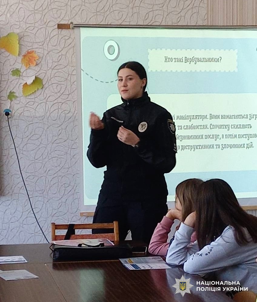 Під час заходів пояснили школярам, чому спілкування в соцмережах із незнайомцями, які пропонують «легкий заробіток», несе загрозу та небезпеку. Що виконання начебто простих завдань у подальшому може обернутися порушенням закону та яка відповідальність за це передбачена.