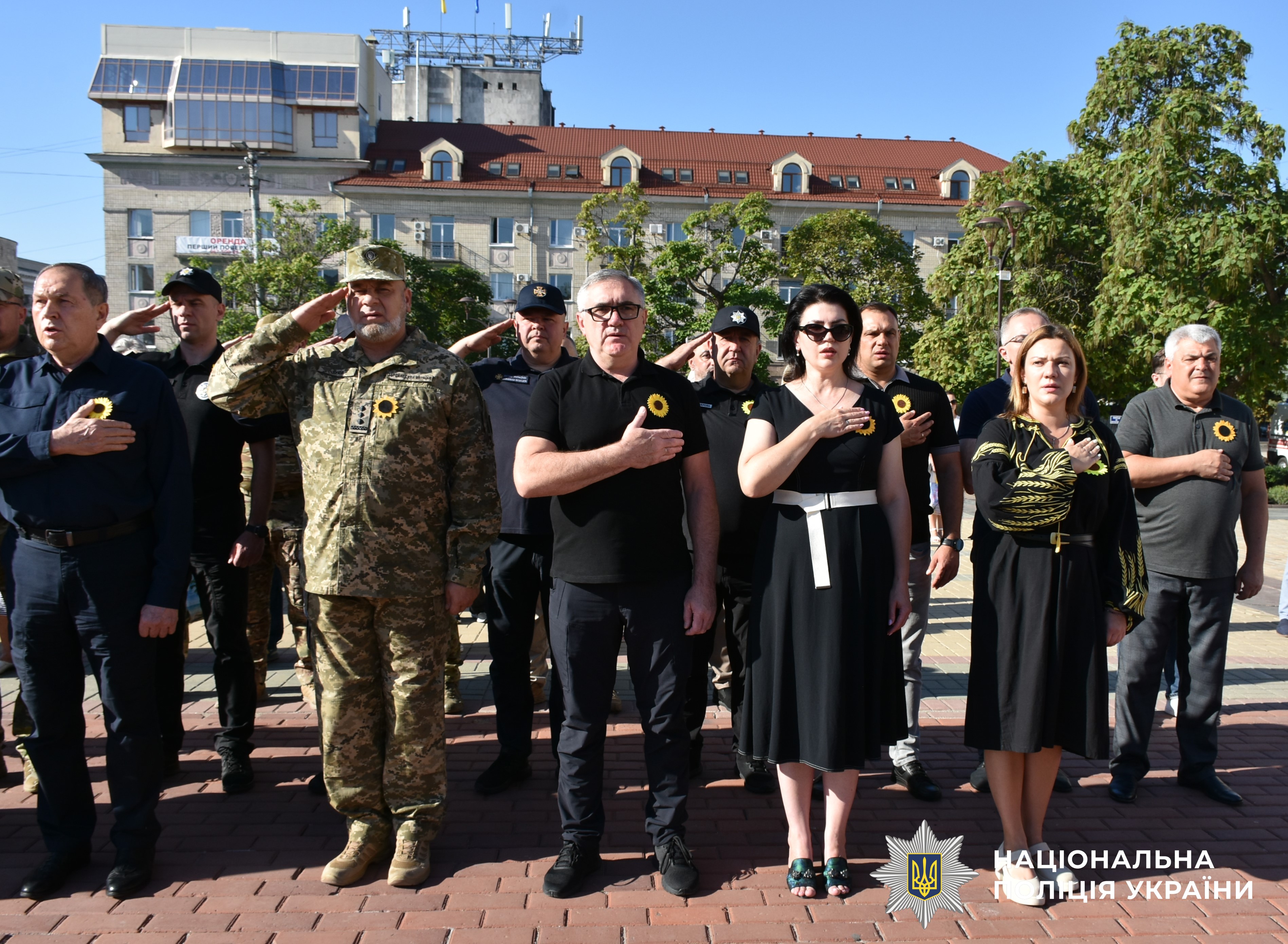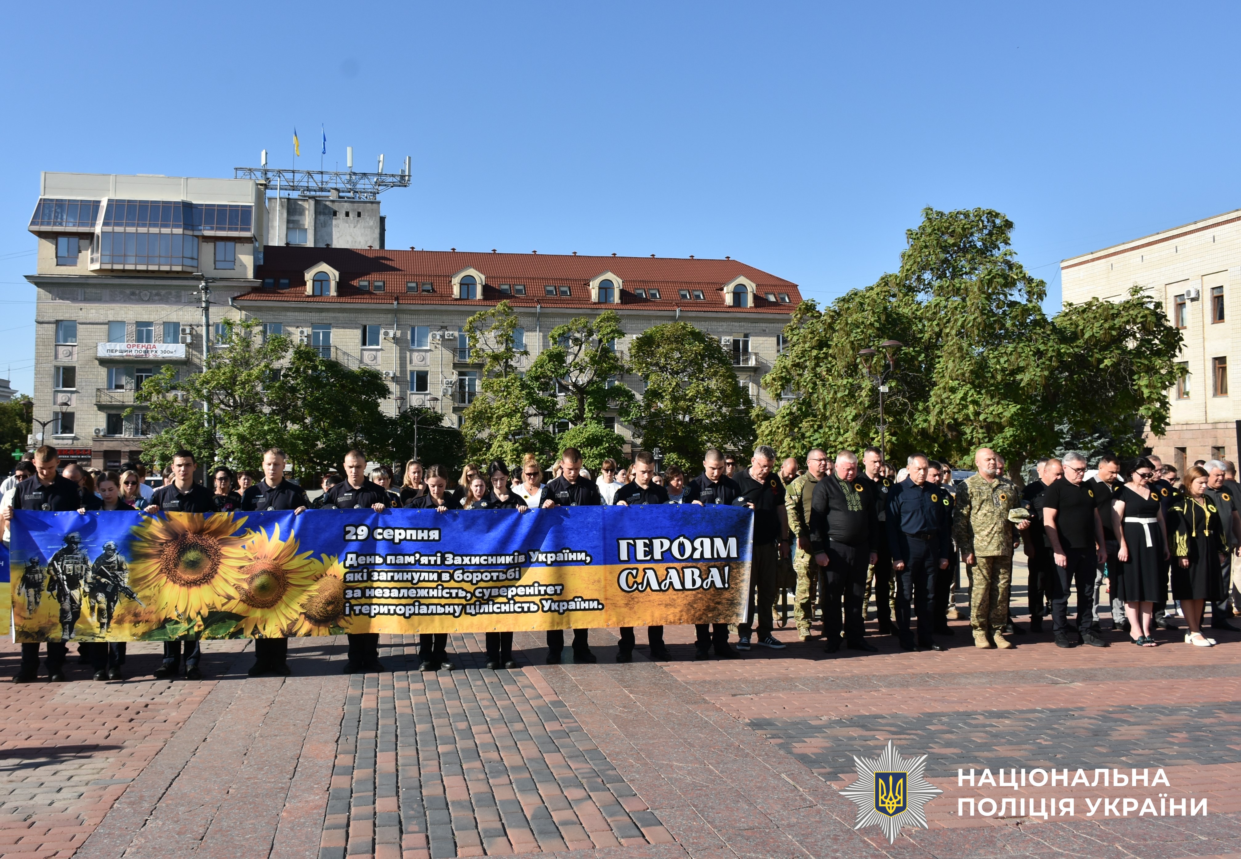 На центральній площі Кропивницького учасники заходів вшанували захисників, які віддали життя за незалежність та територіальну цілісність України. Поліцейські спільно з громадянами схилили голови у хвилині мовчання.