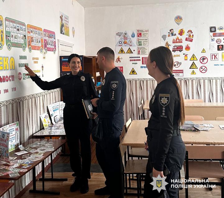 В ході візиту поліцейські ознайомилися зі станом дотримання адміністраціями шкіл визначених та обов’язкових для освітнього процесу в умовах воєнного стану заходів безпеки, облаштуванням шкільних укриттів, які використовуються під час отримання сигналу повітряних тривог.