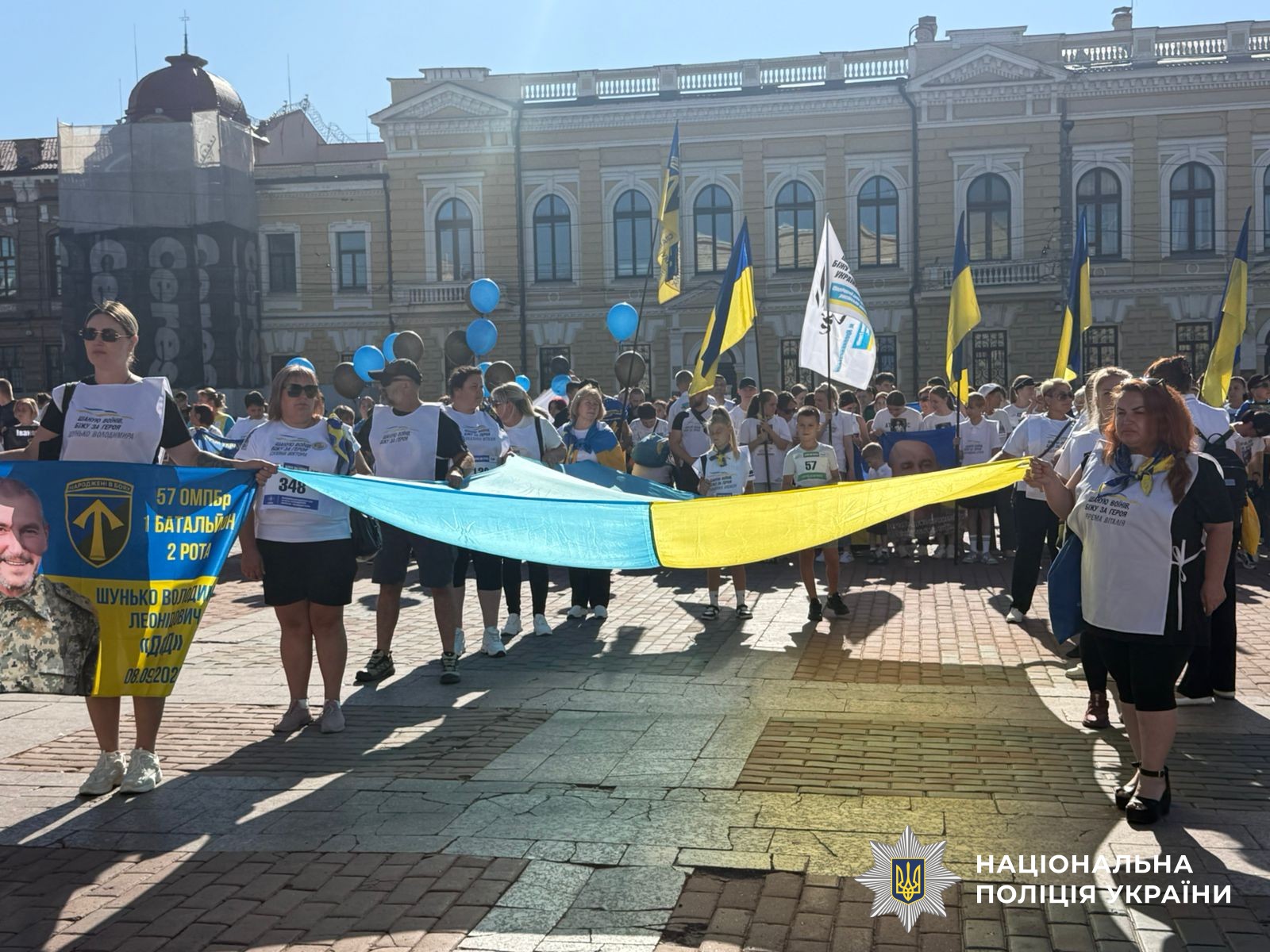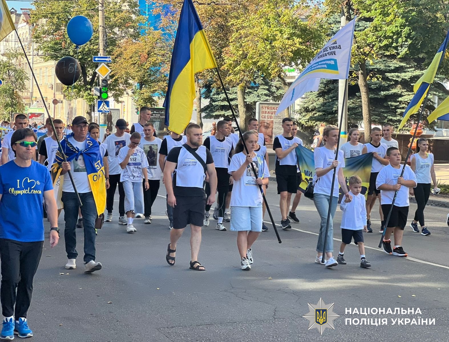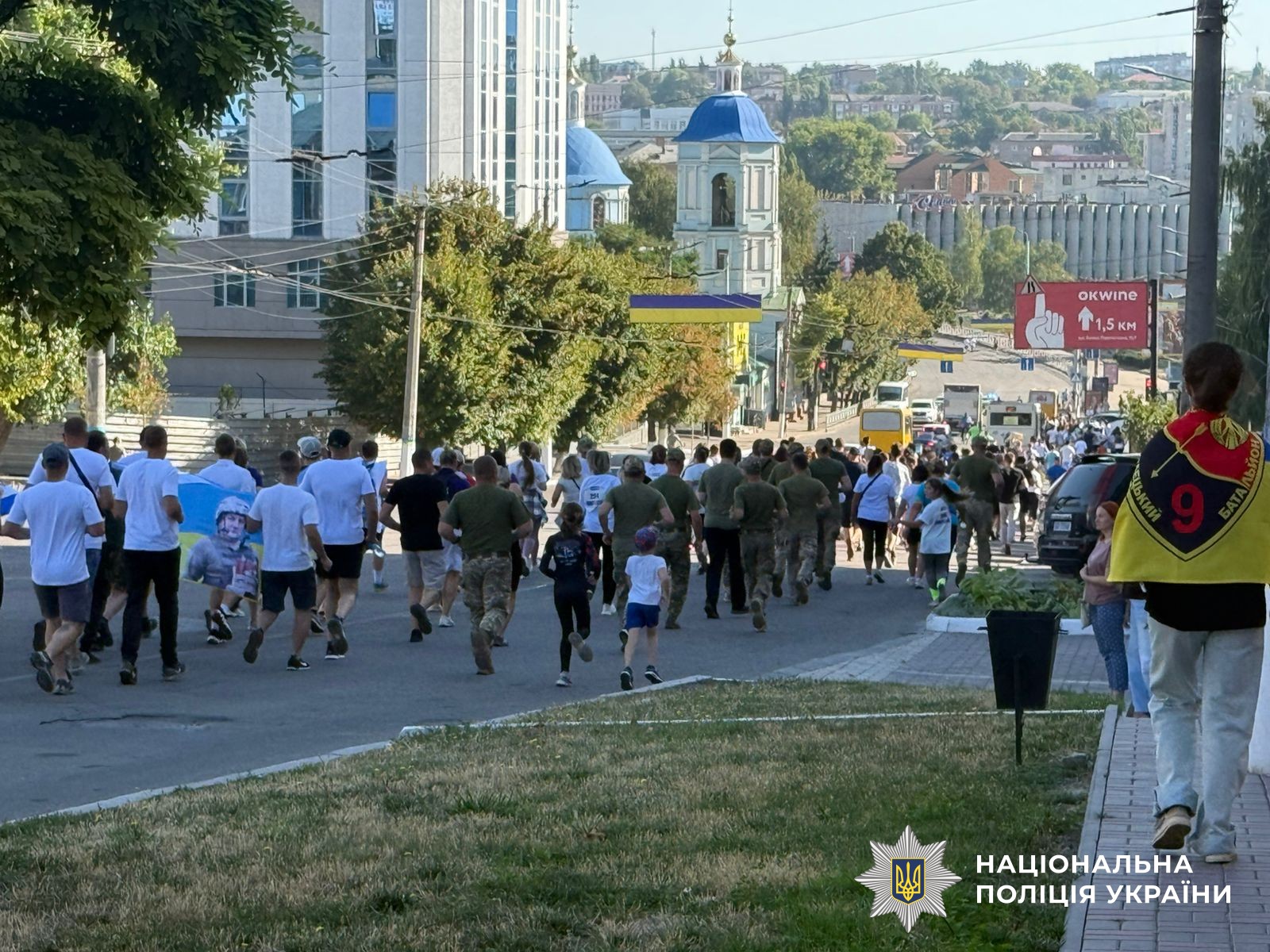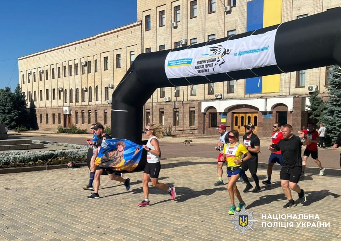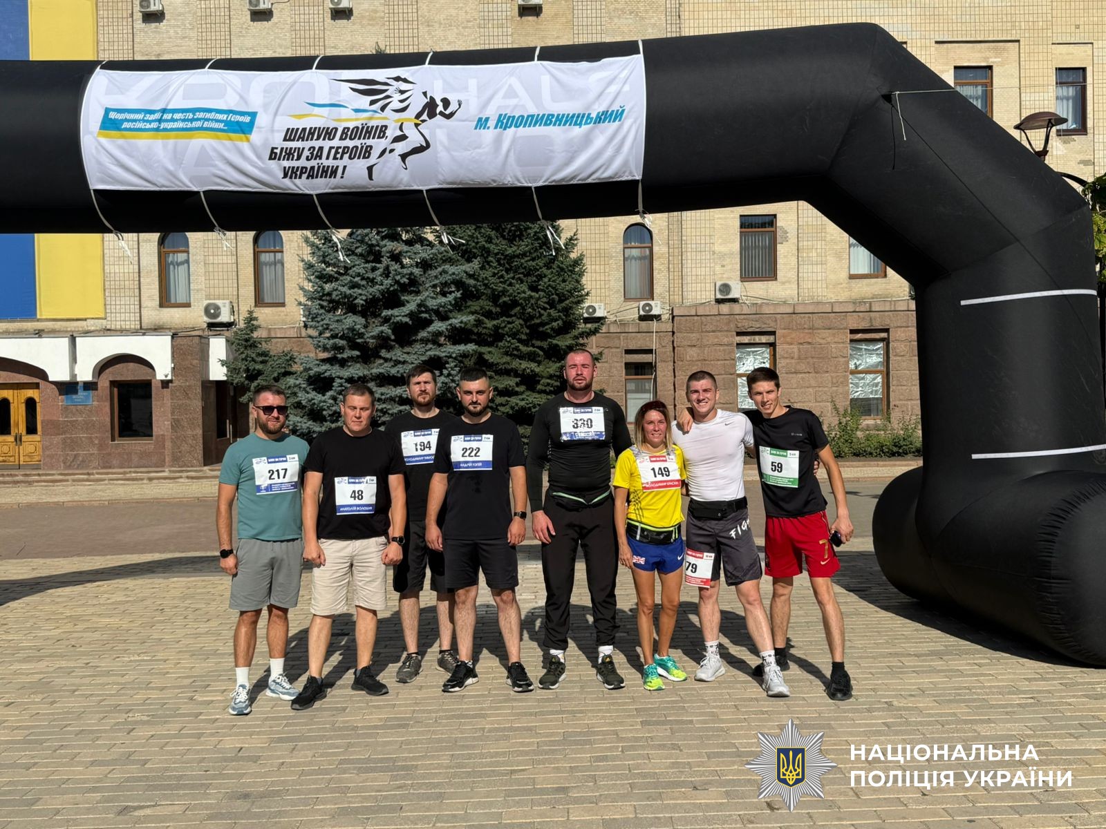 У Кропивницькому 30 правоохоронців та їх родини долучилися до Всеукраїнського патріотичного забігу, що пройшов з нагоди Дня пам’яті захисників і захисниць, які загинули в боротьбі за незалежність, суверенітет і територіальну цілісність України.