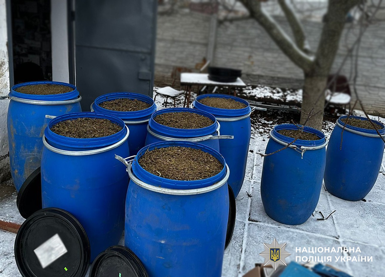 Із залученням роти поліції особливого призначення, за місцями проживання спільників, у господарських приміщеннях і транспортних засобах проведено обшуки. У результаті правоохоронці виявили та вилучили вісім бочок із канабісом вагою близько 370 кг, електронні ваги, вакуумний пакувальник та пакети для фасування наркотичного засобу, гроші та мобільні телефони.