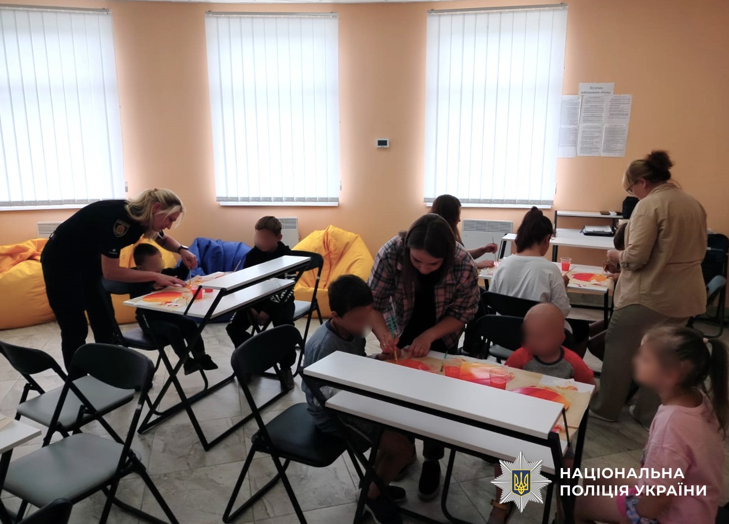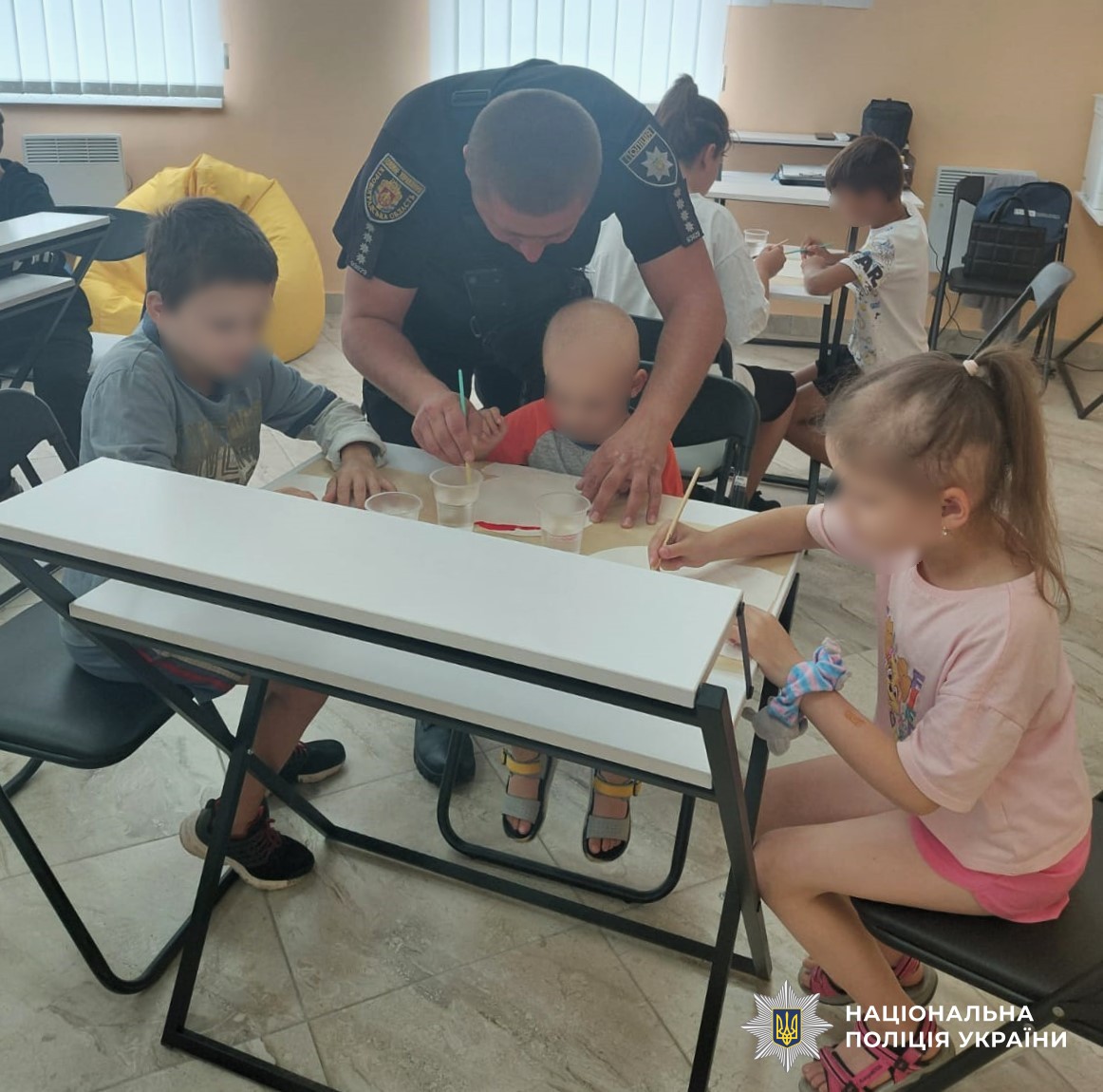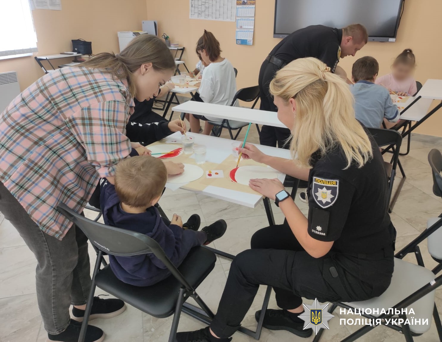Діти мали змогу проявити емоції через творчість – створювали малюнки, отримували підтримку та гарний настрій. Поліцейські долучилися до процесу та активно допомагали малечі.