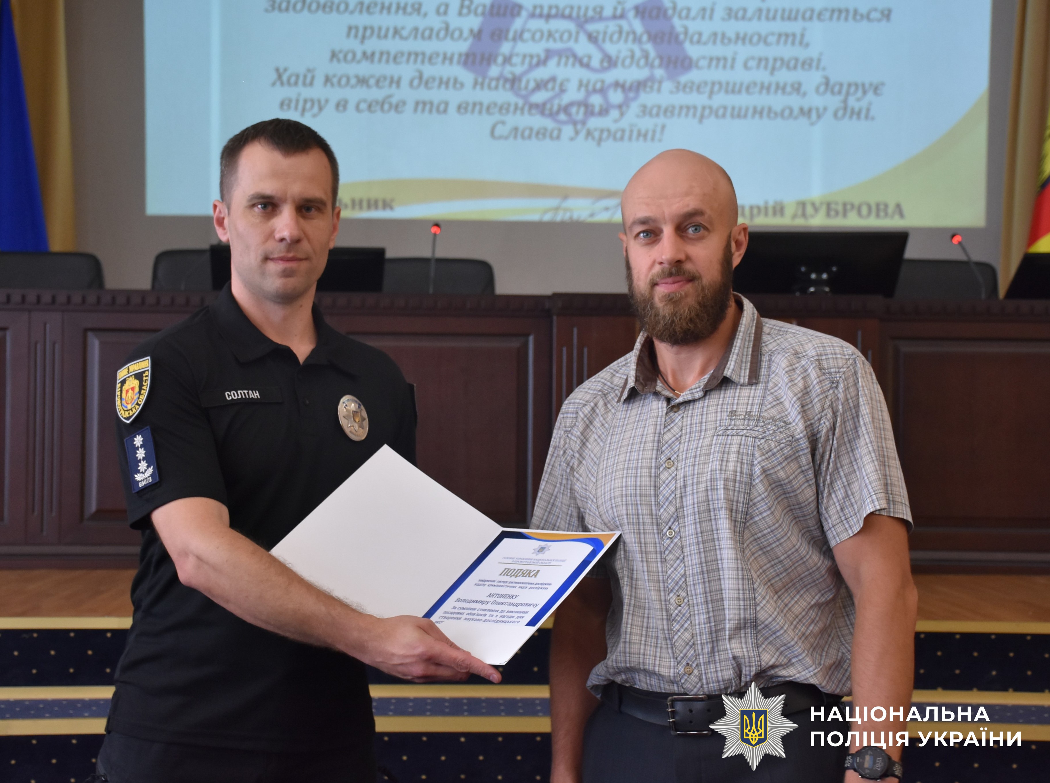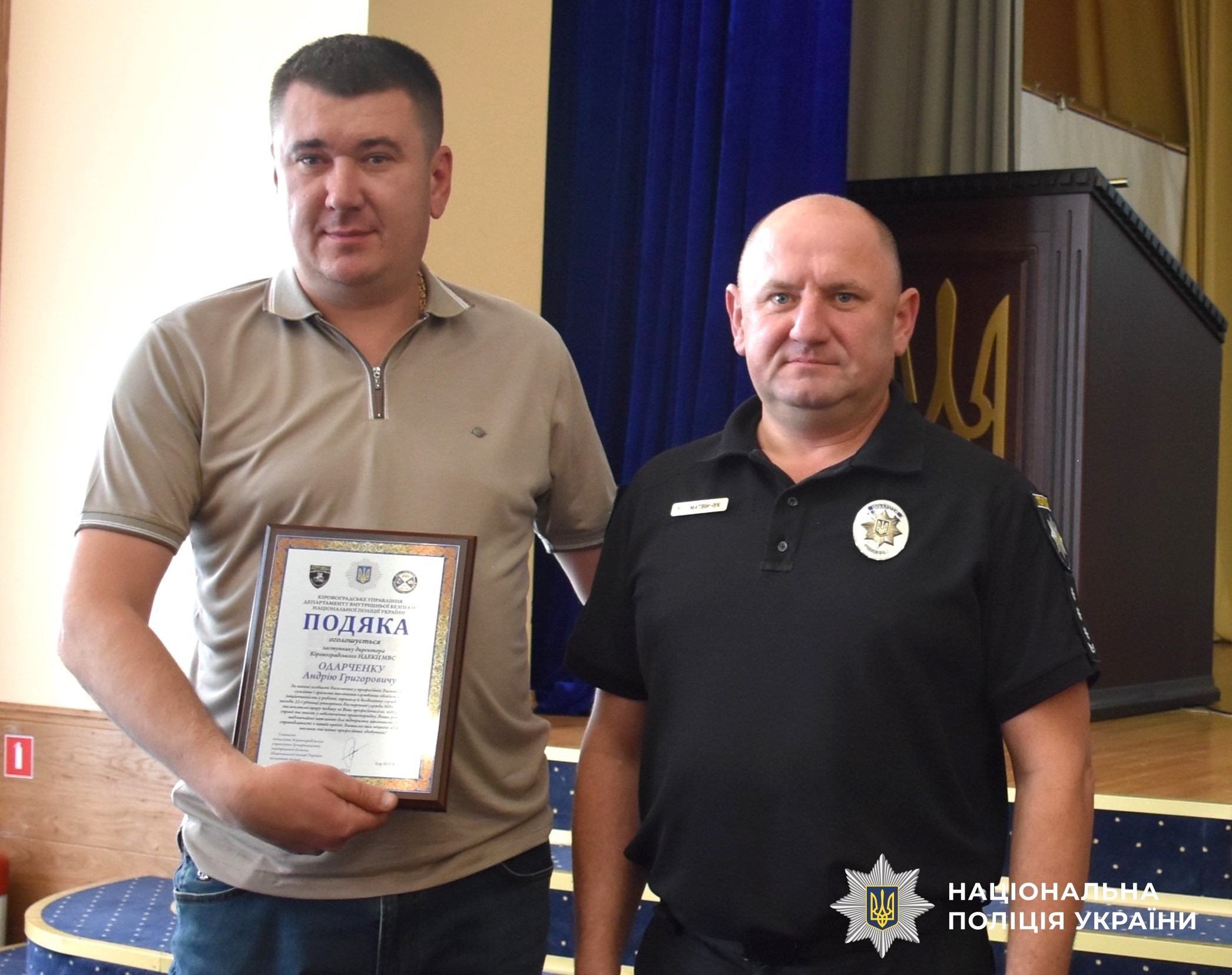 Заступник начальника поліції області Артем Солтан та начальник Кіровоградського управління Департаменту внутрішньої безпеки Нацполіції Ігор Матвійчук подякували керівництву Центру та його структурних підрозділів за багаторічну ефективну співпрацю.