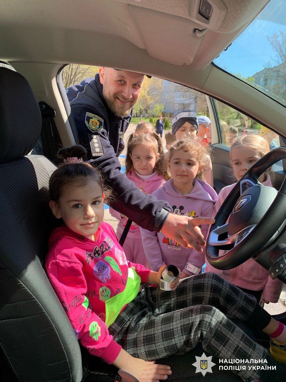 Поліцейські наголосили дітям на необхідності бути видимим на дорозі та отримали у подарунок світловідбивні браслети.