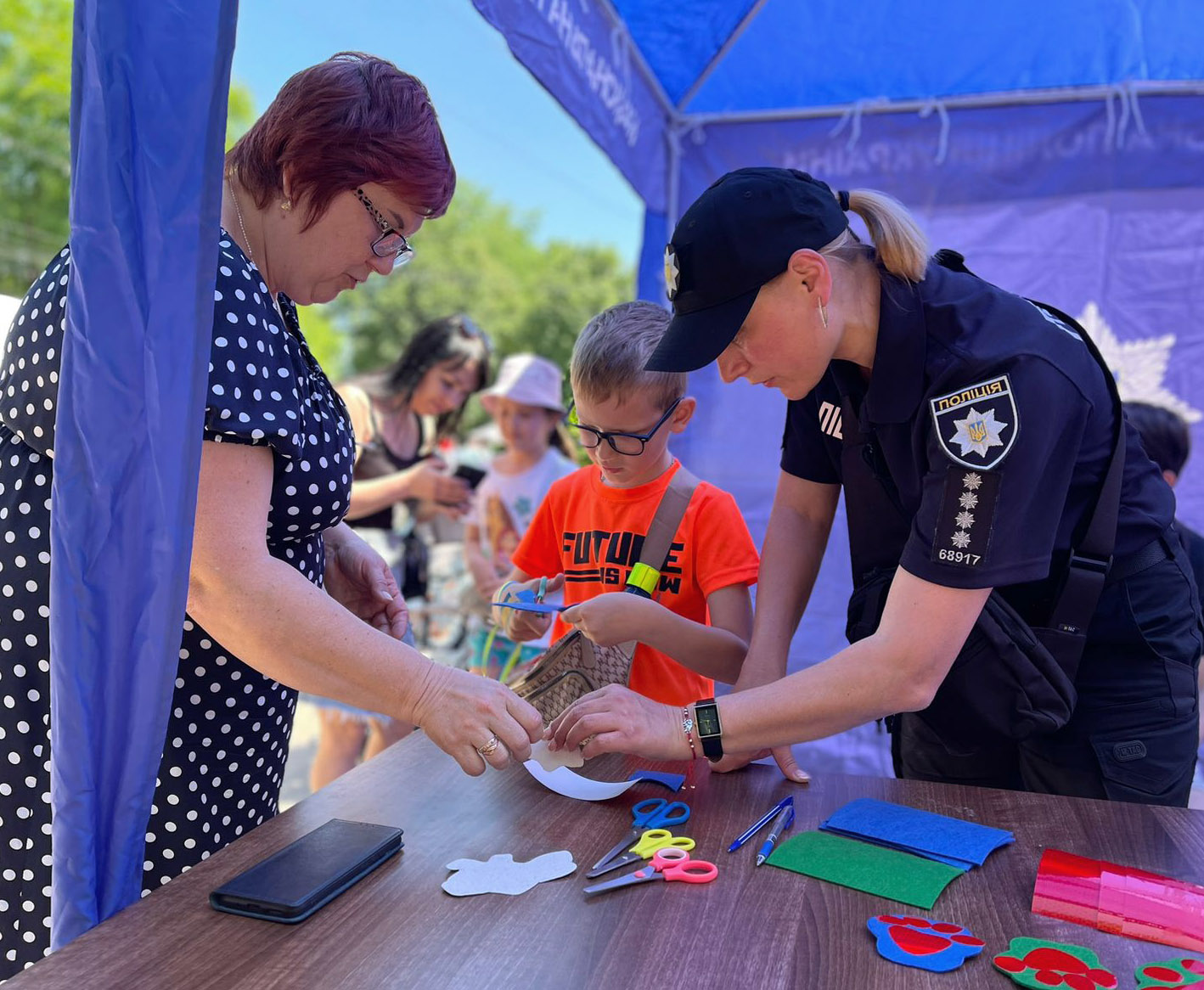 Дорослі учасники заходів ознайомлювалися з послугами поліції охорони або допомагали своїм діткам зробити власноруч флікер.